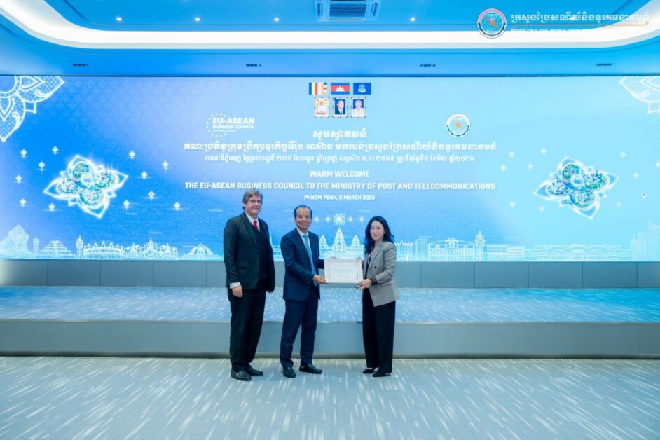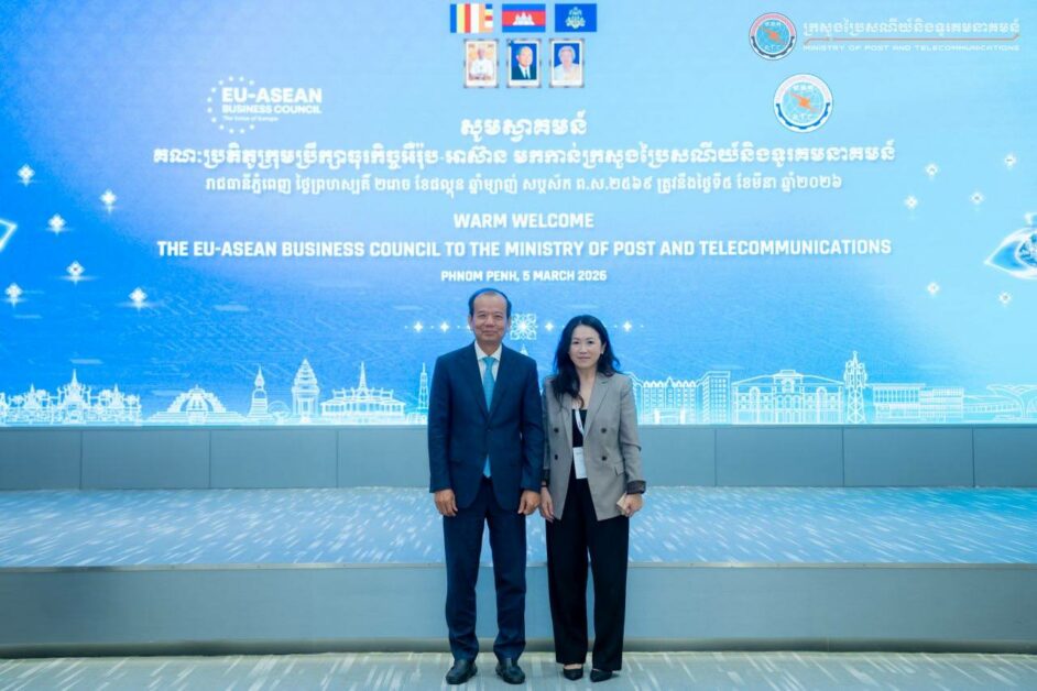 ឯកឧត្តម ជា វ៉ាន់ដេត រដ្ឋមន្រ្តីក្រសួងប្រៃសណីយ៍និងទូរគមនាគមន៍ (ក.ប.ទ.) បានទទួលជួបសម្ដែងការគួរសម និងពិភាក្សាការងារជាមួយគណៈប្រតិភូក្រុមប្រឹក្សាអឺរ៉ុប-អាស៊ាន ដឹកនាំដោយ លោកស្រី Sharon Toh ប្រធានទទួលបន្ទុកតំបន់អាស៊ាន នៅទីស្ដីការ ក.ប.ទ.នាព្រឹកថ្ងៃទី៥ ខែមីនា ឆ្នាំ២០២៦ ។