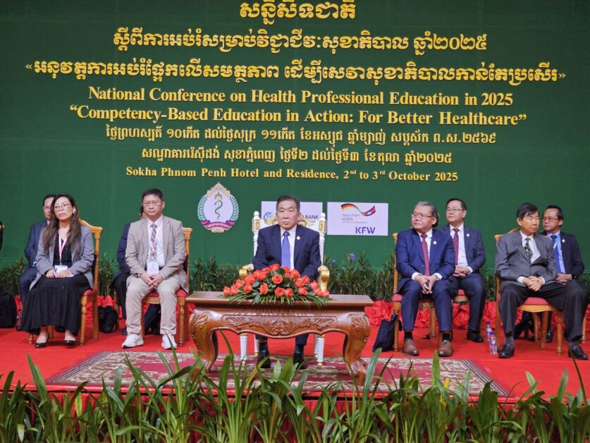 ភ្នំពេញ៖ នៅព្រឹកថ្ងៃទី ០២ ខែតុលា ឆ្នាំ២០២៥ ក្រសួងសុខាភិបាលក្រោមការឧបត្ថម្ភពីគម្រោងពង្រឹង ប្រព័ន្ធអប់រំមុនបម្រើការងារសម្រាប់មន្ត្រីសុខាភិបាល ដោយមានការគាំទ្រពីធនាគារពិភពលោក និង KFW បានរៀបចំសន្និសិទជាតិ ស្ដីពីសន្និសីទជាតិស្តីពីការអប់រំសម្រាប់វិជ្ជាជីវៈសុខាភិបាល ក្រោមប្រធានបទពង្រឹងការអប់រំវិជ្ជាជីវៈសុខាភិបាលដើម្បីសេវាថែទាំសុខភាពកាន់តែប្រសើរ ដោយមានវត្តមានអញ្ជើញចូលរួមពីសំណាក់ថ្នាក់ដឹកនាំក្រសួងសុខាភិបាល, វាគ្មិនជាតិ, វាគ្មិនអន្តរជាតិអញ្ជើញមកពីប្រទេសអូស្រ្តាលី សឹង្ហបុរី ហ្វីលីពីន និងឥណ្ឌូនេស៊ី,អ្នកសម្របសម្រួលជាតិ-អន្តរជាតិ, នាយកដ្ឋានចំណុះក្រសួងសុខាភិបាល, មជ្ឈមណ្ឌលជាតិ, មន្ទីរពេទ្យជាតិ, មន្ទីរសុខាភិបាលរាជធានីខេត្ត, សាលាមធ្យមសិក្សាសុខាភិបាលភូមិភាគទាំង៤, សាកលវិទ្យាល័យវិទ្យាសាស្ត្រ សុខាភិបាល, គ្រឹះស្ថានបណ្តុះបណ្តាលវិស័យសុខាភិបាលឯកជន, គណៈវិជ្ជាជីវៈ, សមាគមវិជ្ជាជីវៈសុខាភិបាល និង, ដៃគូអភិវឌ្ឍន៍ សរុបជាង៣០០នាក់ នៅសណ្ឋាគារសុខារ៉េស៊ីដង់ រាជធានីភ្នំពេញ។