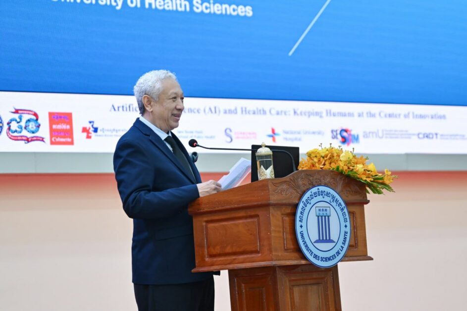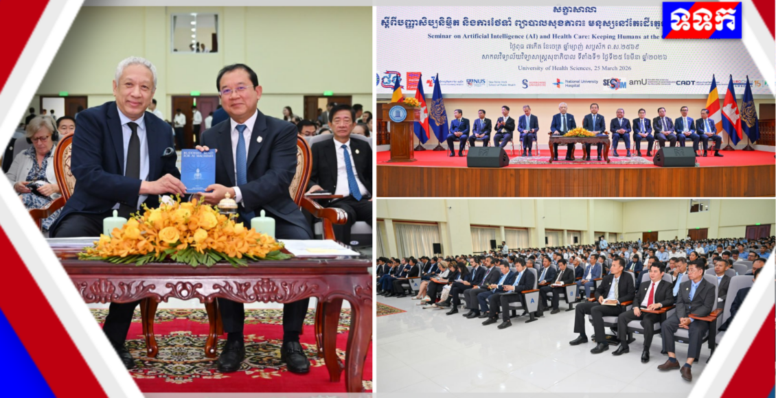 ក្នុងឱកាសសិក្ខាសាលា «បញ្ញាសិប្បនិម្មិត និងសុខាភិបាល៖ ការរក្សាមនុស្សជាគន្លងស្នូលនៃនវានុវត្តន៍ (Keeping humans at the center of innovation)» ឯកឧត្តមសាស្រ្តាចារ្យ ឈាង រ៉ា រដ្ឋមន្ត្រីក្រសួងសុខាភិបាល បានអញ្ជើញជាអធិបតីក្នុងពិធីបើក ដោយមានការចូលរួមពី ឯកឧត្តមសាស្រ្តាចារ្យ ទេសរដ្ឋមន្រ្តី ឆែម គាតរិទ្ធី និងសាស្ត្រាចារ្យ គ្រូបង្ហាត់ និស្សិតវេជ្ជសាស្ត្រ និងអ្នកជំនាញជាតិ និងអន្តរជាតិជាច្រើន ដែលរៀបចំឡើង នៅសាកលវិទ្យាល័យវិទ្យាសាស្ត្រសុខាភិបាល នាព្រឹកថ្ងៃពុធ ទី២៥ ខែមីនា ឆ្នាំ២០២៦។