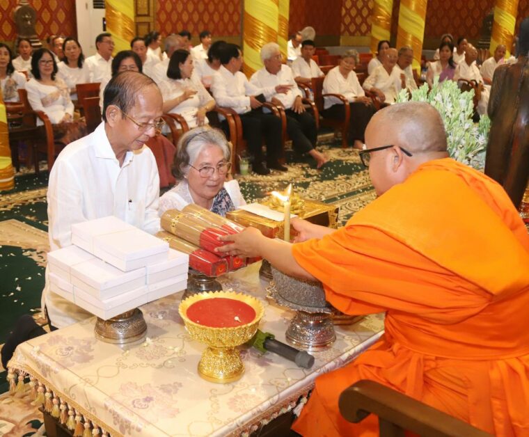 នារសៀលថ្ងៃទី៩ ខែកញ្ញា ឆ្នាំ២០២៥ ឯកឧត្តមហេង ជាវ ទីប្រឹក្សាផ្ទាល់ឯកឧត្តម វង សូត អនុប្រធានទី២នៃរដ្ឋសភាជាតិនិងលោកជំទាវ កាយ ហ៊ុន ព្រមទាំងបុត្ររួមជាមួយពុទ្ធបរិស័ទជិតឆ្ងាយ អញ្ជើញចូលរួមក្នុងពិធីសូត្រមន្ត ចម្រើនព្រះបរិត្ត សម្តែងធម៌ទេសនា សមាទានសីល ពិធីបុណ្យកាន់បិណ្ឌវេនទី៣ នៅវត្តលង្ការព្រះកុសុមារាម ស្ថិតក្នុងខណ្ឌចំការមន រាជធានីភ្នំពេញ ។