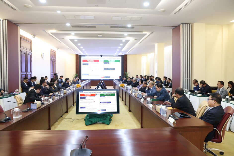 ឯកឧត្តមអគ្គបណ្ឌិតសភាចារ្យ អូន ព័ន្ធមុនីរ័ត្ន ឧបនាយករដ្ឋមន្រ្តី រដ្ឋមន្រ្តីក្រសួងសេដ្ឋកិច្ច និងហិរញ្ញវត្ថុ ដឹកនាំកិច្ចប្រជុំ (Wrap-up Meeting) ដើម្បីបូកសរុប «លទ្ធផលនៃការវាយតម្លៃស្ថានភាពម៉ាក្រូសេដ្ឋកិច្ច និងហិរញ្ញវត្ថុ-សាធារណៈនៃកម្ពុជា សម្រាប់ឆ្នាំ ២០២៥»