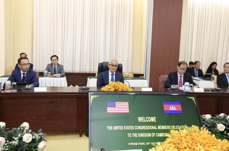 ជាមួយនឹងការស្វាគមន៍ ចំពោះគណៈប្រតិភូនៃសភាសហរដ្ឋអាម៉េរិក មកកាន់កម្ពុជា, ឯកឧត្តមអគ្គបណ្ឌិតសភាចារ្យ បានជម្រាបជូននូវស្ថានភាព និងការវិវឌ្ឍនៃសង្គម-សេដ្ឋកិច្ចកម្ពុជា ដែលបន្តរក្សាបាននូវចលនការកំណើន ក្នុងរយៈកាលជាង ៣ ទសវត្សរ៍ចុងក្រោយនេះ បើទោះ បីជាស្ថិតក្នុងបរិការណ៍នៃភាពមិនប្រាកដប្រជាខ្ពស់, ភាពតានតឹងនៃភូមិសាស្ត្រនយោបាយ, និងហានិភ័យនានាក្នុងតំបន់ និងសកល ។ឯកឧត្តមអគ្គបណ្ឌិតសភាចារ្យ ក៏បានសម្តែងការថ្លែងអំណរគុណយ៉ាងជ្រាលជ្រៅចំពោះកិច្ចសហប្រតិបត្តិការ លើកិច្ចព្រមព្រៀងពន្ធគយបដិការរវាងកម្ពុជា-សហរដ្ឋអាម៉េរិក និងកិច្ចខិតខំប្រឹងប្រែងរបស់ ឯកឧត្តម Donald J. Trump ប្រធានាធិបតីសហរដ្ឋអាម៉េរិក ក្នុងការសម្របសម្រួលឱ្យមានបទឈប់បាញ់រវាងកម្ពុជា-ថៃ ។