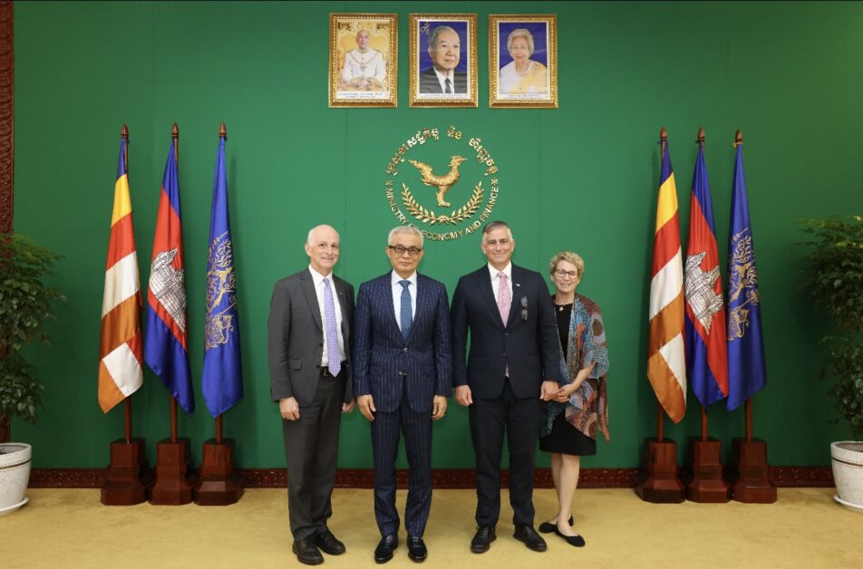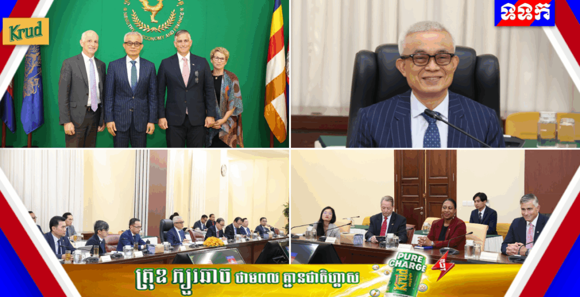 នារសៀលថ្ងៃទី ២៦ ខែ កញ្ញា ឆ្នាំ ២០២៥, នៅទីស្តីការក្រសួងសេដ្ឋកិច្ច និងហិរញ្ញវត្ថុ, ឯកឧត្តមអគ្គ-បណ្ឌិតសភាចារ្យ អូន ព័ន្ធមុនីរ័ត្នឧបនាយករដ្ឋមន្រ្តី រដ្ឋមន្រ្តីក្រសួងសេដ្ឋកិច្ច និងហិរញ្ញវត្ថុ បានទទួលជួបពិភាក្សាការងារជាមួយ គណៈប្រតិភូនៃសភាសហរដ្ឋអាម៉េរិក (U.S.Congressional Delegation) ដឹកនាំដោយ ឯកឧត្តម Adam Smithសមាជិកសភាតំណាងរដ្ឋ Washington ព្រមទាំងមានការចូលរួមពី ឯកឧត្តម Michael Baumgartner សមាជិកសភាតំណាងរដ្ឋ Washington និង លោកជំទាវ Chrissy Houlahan, សមាជិកសភាតំណាងរដ្ឋ Pennsylvania, តំណាងស្ថានទូតសហរដ្ឋអាម៉េរិកប្រចាំនៅកម្ពុជា ព្រមទាំងសហការីអមដំណើរទស្សនកិច្ចនេះ ។