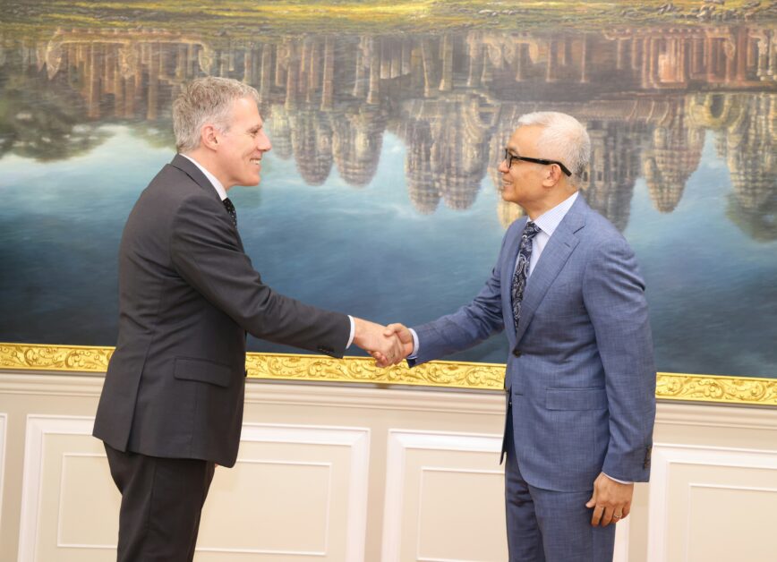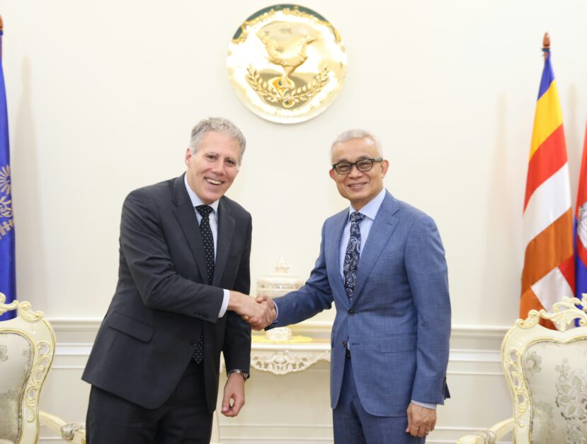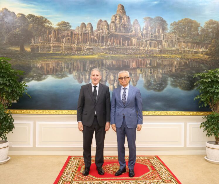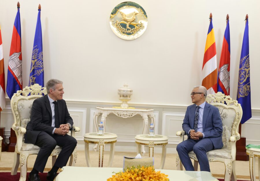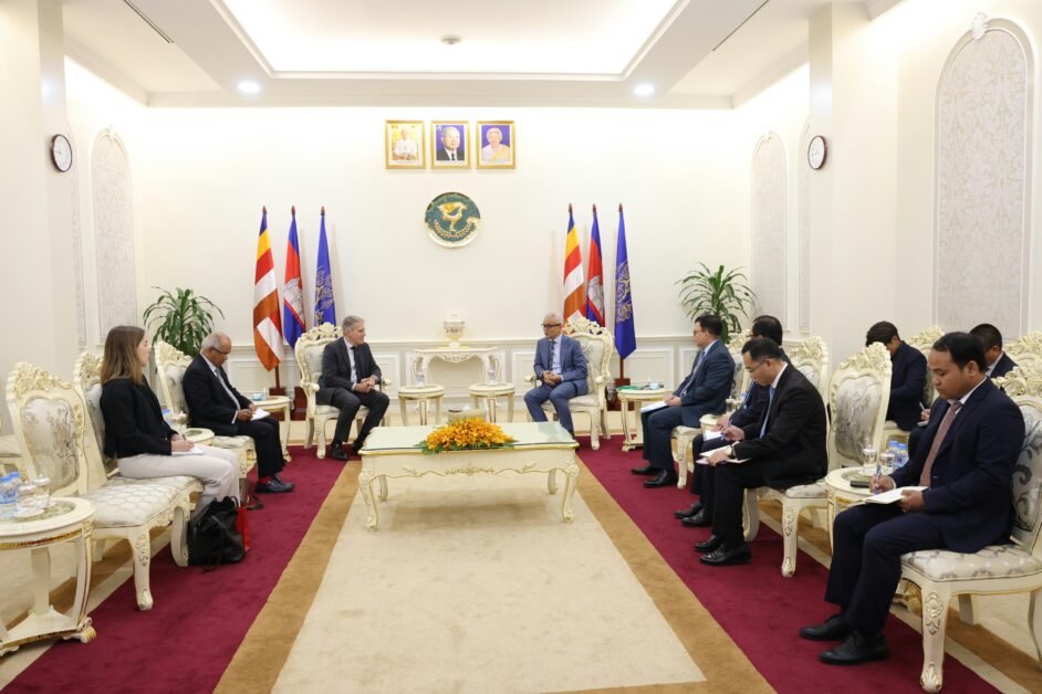 ឯកឧត្តមអគ្គបណ្ឌិតសភាចារ្យ អូន ព័ន្ធមុនីរ័ត្ន ឧបនាយករដ្ឋមន្រ្តី រដ្ឋមន្រ្តីក្រសួងសេដ្ឋកិច្ច និងហិរញ្ញវត្ថុ ទទួលជួបពិភាក្សាការងារជាមួយឯកឧត្តម Christian DesRoches ឯកអគ្គរដ្ឋទូតវិសាមញ្ញ និងពេញសមត្ថភាព នៃប្រទេសកាណាដាប្រចាំកម្ពុជា