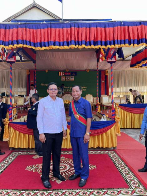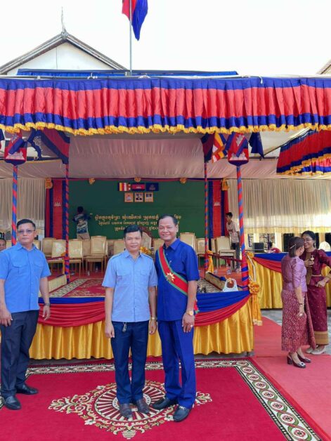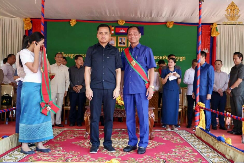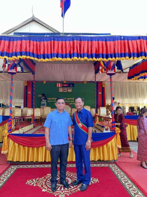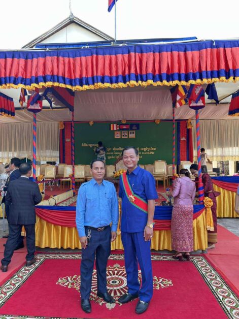 ឯកឧត្តមអភិសន្តិបណ្ឌិត ស សុខា បំពាក់គ្រឿងឥស្សរិយយស ព្រះរាជាណាចក្រកម្ពុជា ថ្នាក់មហាសេនា ជូនឯកឧត្តម មុំ សៀក ប្រធានក្រុមការងារចុះជួយមូលដ្ឋានឃុំធាយ និងជាប្រធានក្រុមប្រឹក្សាសហជីពជាតិកម្ពុជា (CCNU)
