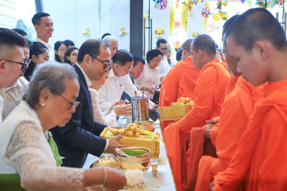 នៅក្នុងពិធីនេះ ក៏មានការយាងនិមន្តប្រោះព្រំពីសម្តេចព្រះរាជាគណៈ និងមន្រ្តីសង្ឃចំនួន ៩អង្គ និងរាប់បាត្រប្រគេនព្រះសង្ឃចំនួន ៦២អង្គ ដើម្បីអបអរសាទរពិធីបុណ្យចូលឆ្នាំថ្មីប្រពៃណីជាតិ ឆ្នាំម្សាញ់ សប្តស័កព.ស.២៥៦៩ ដែលនឹងឈានមកដល់នាពេលខាងមុខនេះ និងដើម្បីបង្សុកូលជូនដល់វិញ្ញាណក្ខន្ធថា្នក់ដឹកនាំទីស្តីការគណៈរដ្ឋមន្រ្តី រួមមាន ឯកឧត្តម អ៊ុង ផន, សម្តេចវិបុលបញ្ញា សុខ អាន និង សម្តេចចៅហ្វាវាំង វរវៀងជ័យ អធិបតីស្រឹង្គារ គង់ សំអុល ព្រមទាំងថ្នាក់ដឹកនាំ និងមន្ត្រីរាជការទាំងអស់ ដែលមានស្នាដៃចំពោះទីស្តីការគណៈរដ្ឋមន្រ្តី ហើយបានបូជាអាយុជីវិត ដើម្បីបុព្វហេតុជាតិមាតុភូមិ។ ព្រមជាមួយនោះ ព្រះ សង្ឃទ្រង់បាន ស្វាធ្យាយសត្តប្បករុណាភិធម្ម បង្សុកូល ជាកិច្ចឧទ្ទិសកុសល ផលបុណ្យជូន វិញ្ញាណ ក្ខន្ធបុព្វការីជន មាតាបិតា ជីដូនជីតា និងញាតកាទាំង៧សន្ដាន ដែលបានចែកឋាន ទៅ កាន់បរលោកខាងមុខ សូមវិញ្ញាណក្ខន្ធអ្នកទាំងអស់ បានទៅសោយសុខក្នុងឋានសុគតិភព កុំបី ឃ្លៀងឃ្លាតឡើយ។