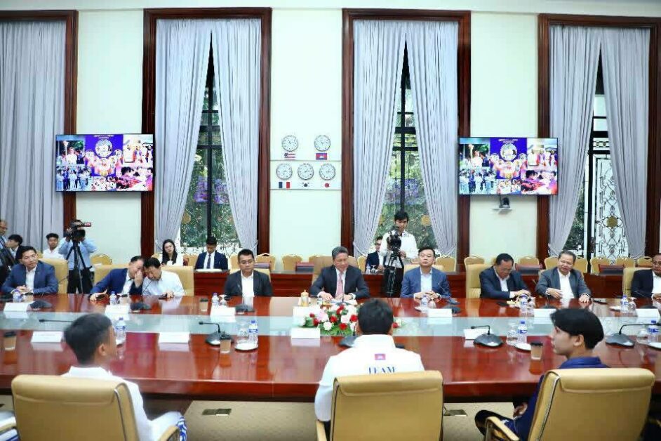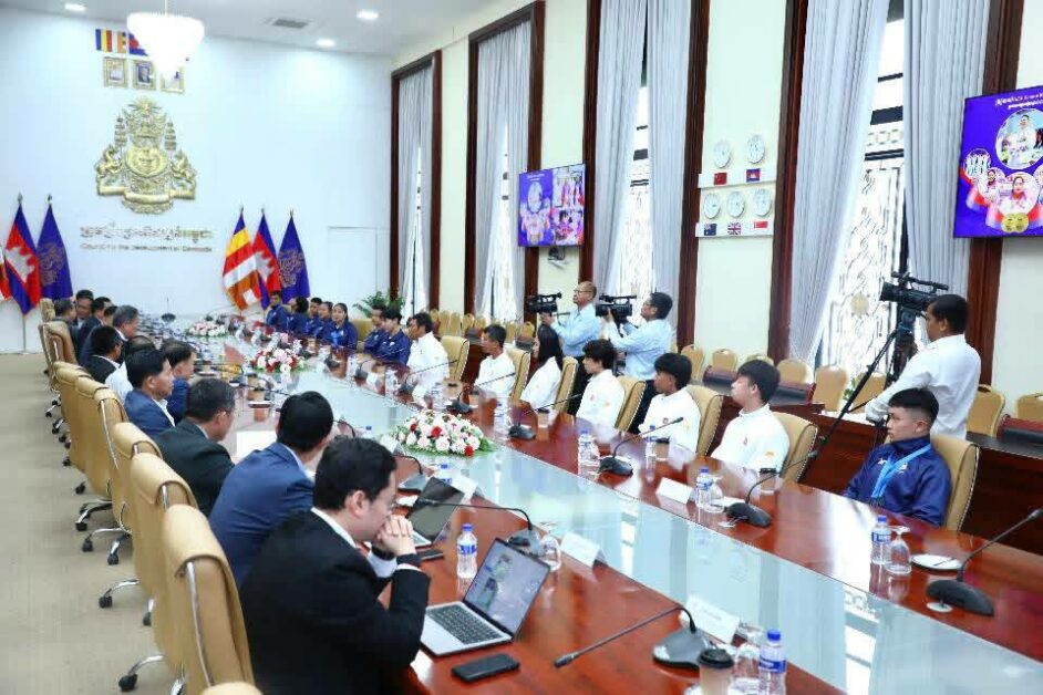 នៅក្រុមប្រឹក្សាអភិវឌ្ឍន៍កម្ពុជា នាព្រឹកថ្ងៃព្រហស្បតិ៍ ទី៤ ខែធ្នូ ឆ្នាំ២០២៥ ឯកឧត្តម ស៊ុន ចាន់ថុល ឧបនាយករដ្ឋមន្ត្រី អនុប្រធានទី១ ក្រុមប្រឹក្សាអភិវឌ្ឍន៍កម្ពុជា និងជាប្រធានសហព័ន្ធខ្មែរកីឡាហែលទឹក បានទទួលជួបសម្តែងគួរសម ផ្តល់រង្វាន់លើកទឹកចិត្តជូនដល់គ្រូបង្វឹក កីឡាករ កីឡាការិនីហែលទឹកជម្រើសជាតិ ដែលបានដណ្តើមមេដាយជូនជាតិមាតុភូមិ ក្នុងកម្មវិធីប្រកួតកីឡាហែលទឹកដោយប្រើកន្ទុយត្រី (Fin-Swimming) លើកទី២ ឆ្នាំ២០២៥ រៀបចំដោយសហព័ន្ធកីឡាក្នុងទឹកពិភពលោក (CMAS) សម្រាប់តំបន់អាស៊ីអាគ្នេយ៍ ដែលបានប្រព្រឹត្តទៅក្នុងប្រទេសឥណ្ឌូនេស៊ី និងជួបសម្តែងគួរសម ផ្តល់កម្លាំងចិត្ត អនុសាសន៍ណែនាំ និងអំណោយលើកទឹកចិត្តជូនដល់គ្រូបង្វឹក កីឡាករ កីឡាការិនីហែលទឹកជម្រើសជាតិ ដែលត្រៀមនឹងធ្វើដំណើរទៅចូលរួមការប្រកួតកីឡាស៊ីហ្គេមលើកទី៣៣ ឆ្នាំ២០២៥ នៅក្នុងប្រទេសថៃ។