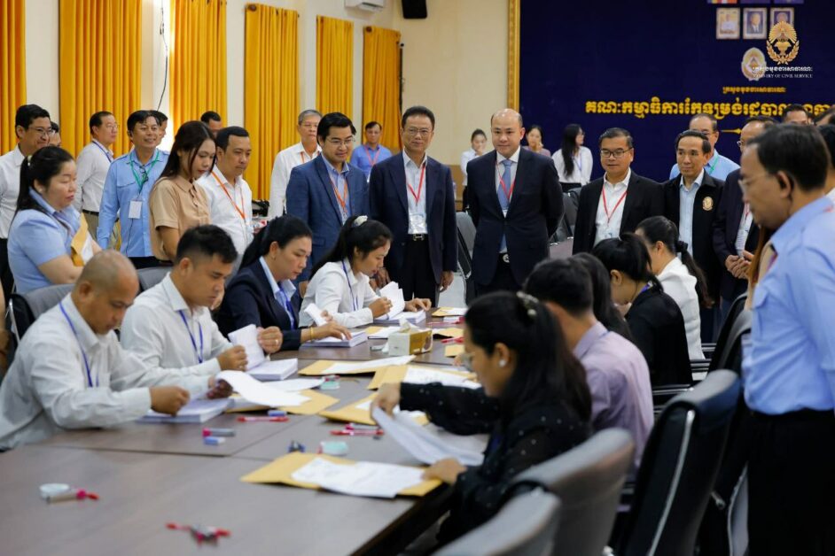 ព្រឹកថ្ងៃទី២៩ ខែធ្នូ ឆ្នាំ២០២៥ នេះ ឯកឧត្តមឧបនាយករដ្ឋមន្ត្រី ហ៊ុន ម៉ានី រដ្ឋមន្ត្រីក្រសួងមុខងារសាធារណៈ និងជាប្រធានគណៈកម្មការរៀបចំការប្រឡងប្រជែង បានអញ្ជើញចុះពិនិត្យដោយផ្ទាល់ដល់មណ្ឌលកំណែ ស្ថិតក្នុងសាលាភូមិន្ទរដ្ឋបាល។ ការចុះវត្តមានផ្ទាល់នេះ គឺជាការបង្ហាញនូវឆន្ទៈមោះមុតក្នុងយន្តការប្រឡងឱ្យកាន់តែមានភាពសុក្រឹត និងយុត្តិធម៌សម្រាប់បេក្ខជនទាំងអស់។
