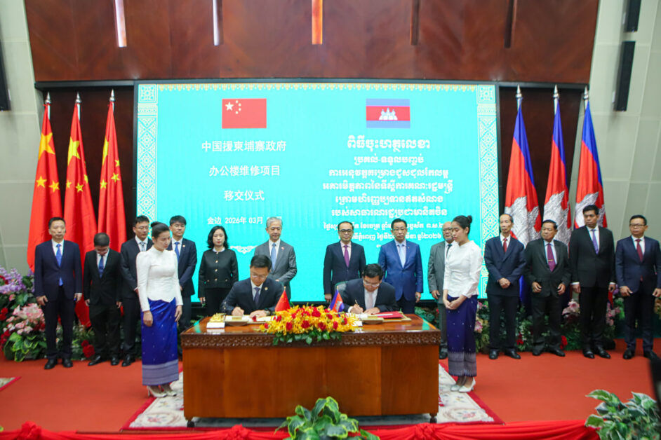 (ភ្នំពេញ)៖ នាព្រឹកថ្ងៃទី២៧ ខែមីនា ឆ្នាំ២០២៦ នៅទីស្តីការគណៈរដ្ឋមន្រ្តី មានការរៀបចំពិធីចុះហត្ថលេខាប្រគល់-ទទួលបញ្ចប់គម្រោងជួសជុលកែលម្អអគារមិត្តភាពនៃទីស្តីការគណៈរដ្ឋមន្ត្រី ដែលមានទឹកប្រាក់ស្មើនឹងប្រមាណ ៧លានដុល្លារអាម៉េរិក ក្រោមហិរញ្ញប្បទានឥតសំណងរបស់សាធារណរដ្ឋប្រជាមានិតចិន។ ពិធីនេះ បានប្រព្រឹត្តទៅក្រោមអធិបតីភាពឯកឧត្តម វង្សី វិស្សុត ឧបនាយករដ្ឋមន្ត្រីប្រចាំការ រដ្ឋមន្ត្រីទទួលបន្ទុកទីស្តីការគណៈរដ្ឋមន្ត្រី និងឯកឧត្តម វ៉ាង វិនពីន ឯកអគ្គរដ្ឋទូតវិសាមញ្ញនិងពេញសមត្ថភាពនៃសាធារណរដ្ឋប្រជាមានិតចិនប្រចាំព្រះរាជាណាចក្រកម្ពុជា ។