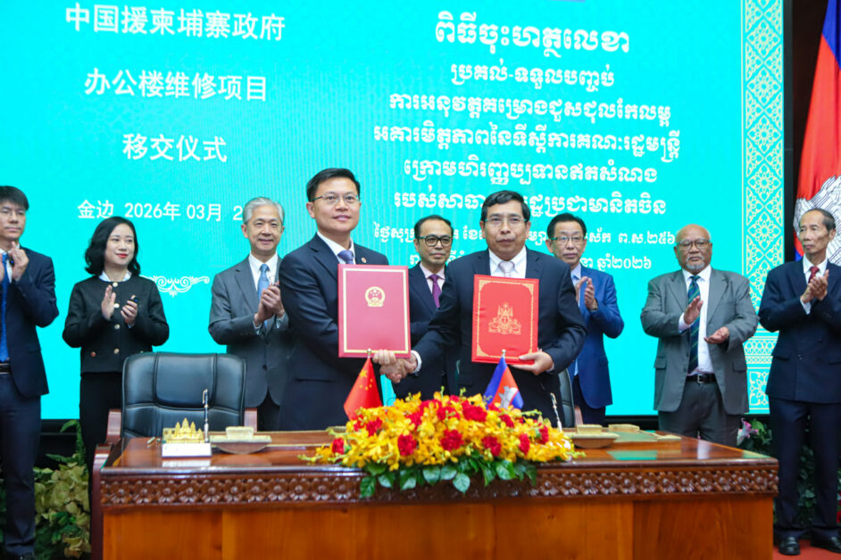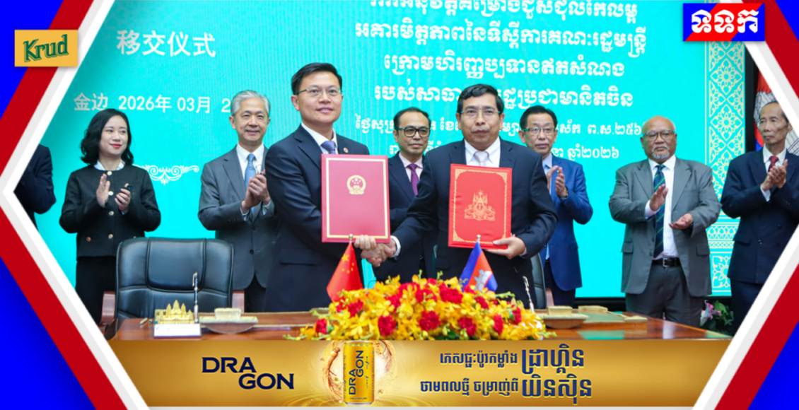 (ភ្នំពេញ)៖ នាព្រឹកថ្ងៃទី២៧ ខែមីនា ឆ្នាំ២០២៦ នៅទីស្តីការគណៈរដ្ឋមន្រ្តី មានការរៀបចំពិធីចុះហត្ថលេខាប្រគល់-ទទួលបញ្ចប់គម្រោងជួសជុលកែលម្អអគារមិត្តភាពនៃទីស្តីការគណៈរដ្ឋមន្ត្រី ដែលមានទឹកប្រាក់ស្មើនឹងប្រមាណ ៧លានដុល្លារអាម៉េរិក ក្រោមហិរញ្ញប្បទានឥតសំណងរបស់សាធារណរដ្ឋប្រជាមានិតចិន។ ពិធីនេះ បានប្រព្រឹត្តទៅក្រោមអធិបតីភាពឯកឧត្តម វង្សី វិស្សុត ឧបនាយករដ្ឋមន្ត្រីប្រចាំការ រដ្ឋមន្ត្រីទទួលបន្ទុកទីស្តីការគណៈរដ្ឋមន្ត្រី និងឯកឧត្តម វ៉ាង វិនពីន ឯកអគ្គរដ្ឋទូតវិសាមញ្ញនិងពេញសមត្ថភាពនៃសាធារណរដ្ឋប្រជាមានិតចិនប្រចាំព្រះរាជាណាចក្រកម្ពុជា ។