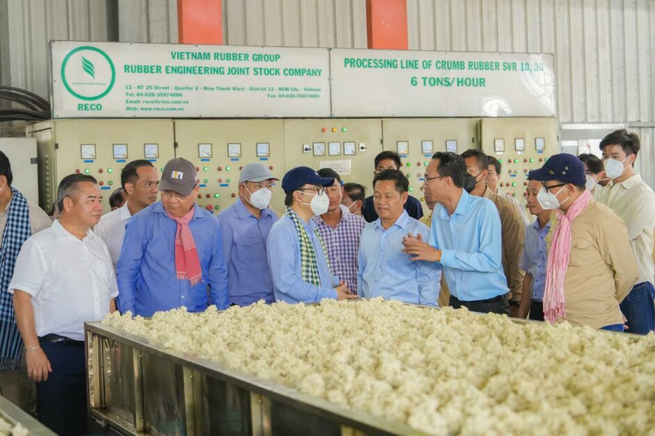តមកទៀត ឯកឧត្ដមឧបនាយករដ្ឋមន្រ្តីប្រចាំការ និងប្រតិភូ ក៏បានបន្តចុះពិនិត្យខ្សែច្រវាក់ផលិតកម្មកែច្នៃ​កៅស៊ូរបស់ក្រុមហ៊ុន ស៊ី​.​អ.ស៊ី.ខេ​.២ អភិ​វឌ្ឍន៍​ កៅ​ស៊ូ​ ឯ.ក និងក្រុមហ៊ុន បៀន​ ហៀក​ អ៊ិន​វេស​មេន ឯ.ក ក្នុងភូមិសាស្ត្រ​ស្រុកស្ទោង។ ក្រុមហ៊ុនទាំងពីរ បានវិនិយោគលើការដាំដុះនិងកែច្នៃកៅស៊ូ ដោយដាំដុះលើផ្ទៃដី១៦ ២៦៨,៦៨ហិកតា ប្រើទុន​វិនិយោគសរុបប្រមាណ ១០០លានដុល្លារអាម៉េរិក​ និងមានកម្មករសរុប ​៣ ៦០០នាក់ ហើយក្នុងឆ្នាំ២០២៥នេះបរិមាណជ័រកៅស៊ូកែច្នៃមានចំនួន ៤៨ ០០០តោន។
