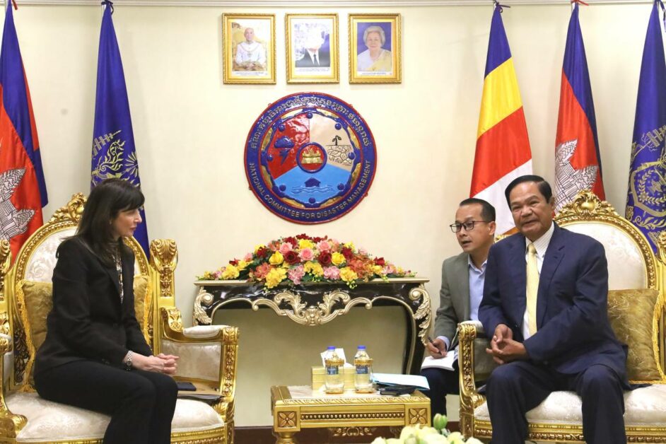 ឯកឧត្តមទេសរដ្ឋមន្ត្រីគន់ គីម ក្នុងរាជរដ្ឋាភិបាលកម្ពុជាក៏ថ្លែងអំណរគុណយ៉ាងជ្រាលជ្រៅផងដែលចំពោះអង្កការកម្មវិធីស្បៀងអាហារពិភពលោកដែលតែងតែយកចិត្តទុកដាក់សហការគាំលើវិស័យការងារគ្រប់គ្រងគ្រោះមហន្តរាយ ក៏ដូចជាសហការគាំលើពហុវិស័យនៅបណ្តាលក្រសួងស្ថាប័នពាក់ព័ន្ធនានា ទាំងថ្នាក់ជាតិក្រោមជាតិដល់មូលដ្ឋាសហគមន៏ផងដែរ។ជាក់ស្តែងកន្លងមកបានចូលកម្មវិធីកសាងទីទួលសុវត្តិភាព ប្រព័ន្ធប្រកាសពត៍មាននិងកម្មវិធីបណ្តុះបណ្តាលមន្ត្រីតាមបណ្តាលក្រសួង មន្ទី លើការងារឆ្លើយតប ការគ្រប់គ្រងគ្រោះមហន្តរាយ ពិសេសទៅទៀតនោះសម្រាប់ឆ្នាំ២០២៥ រួមមានអង្ករប្រមាណ ២២០តោន ដល់ជន់ភាសិក៤,៥០០គ្រួសារ នៅក្នុង ខេត្តឧត្តរមានជ័យ។ ក្នុងដើមឆ្នាំ២០២៦នេះបានផ្តល់នូវជំនួយជាក្តារបាឡែតឈើចំមនួន៣,០០០ក្តារ ដល់ជនភៀសសឹក ដោយមានកិច្ចសម្របសម្រួលពី គ.ជ.គ.ម. និងអង្គការ IOMនិងមានការចូលរួមពីអង្កការកម្មវិធីអភិវឌ្ឍន៍សហប្រជាជាតិ (UNDP)ដោយមានតាមរយៈភ្នាក់ងារផ្តល់នូវជំនួយជាផ្នែកហិរញ្ញវត្ថុ ដើម្បីចូលពង្រឹង សមត្ថភាព និងការកសាងផែនការសកម្មភាពជាតិសម្រាប់ការបន្ថយហានិភ័យគ្រោះមហន្តរាយ ២០២៤- ២០២៨និងជាពិសេសបានផ្តល់ជំនួយផ្នែកបច្ចេកទេស និងហិរញ្ញវត្ថុ សម្រាប់គ្រប់គ្រងនិងអនុវត្តប្រព័ន្ធព័ត៌មានការខូចខាត និងបាត់ បង់គ្រោះមហន្តរាយកម្ពុជា (CamDi) ដែលចាប់ផ្តើមអនុវត្តចាប់ពីឆ្នាំ២០១២ ដល់បច្ចុប្បន្ននៅកម្ពុជា។