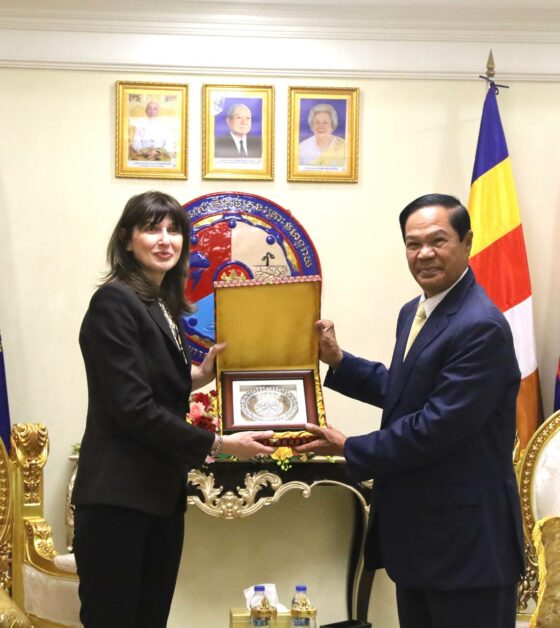 ឯកឧត្តម កិត្តិសង្គហបណ្ឌិត គន់ គីម ទេសរដ្ឋមន្ត្រី អនុប្រធានទី១ គណៈកម្មាធិការជាតិគ្រប់គ្រងគ្រោះមហន្តរាយបានអនុញ្ញាតអោយ លោកស្រី វ៉ាឡាដានកា អង់ឌីវ៉ា (Ms. Vladanka Andreeva) អ្នកសម្របសម្រួល អង្គការសហប្រជាជាតិប្រចាំនៅកម្ពុជាចូលជួបជួបសម្តែងការគួរសមនិងពិភាក្សាការងារ នារសៀលថ្ងៃទី៩ ខែកុម្ភៈ ឆ្នាំ២០២៦នៅគណកម្មាធិការជាតិគ្រប់គ្រងគ្រោះមហន្តរាយ. ក្នុងនៃបន្តកិច្ចសហប្រតិបត្តិការលើវិស័យគ្រប់គ្រងគ្រោះមហន្តរាយនៅកម្ពុជា។