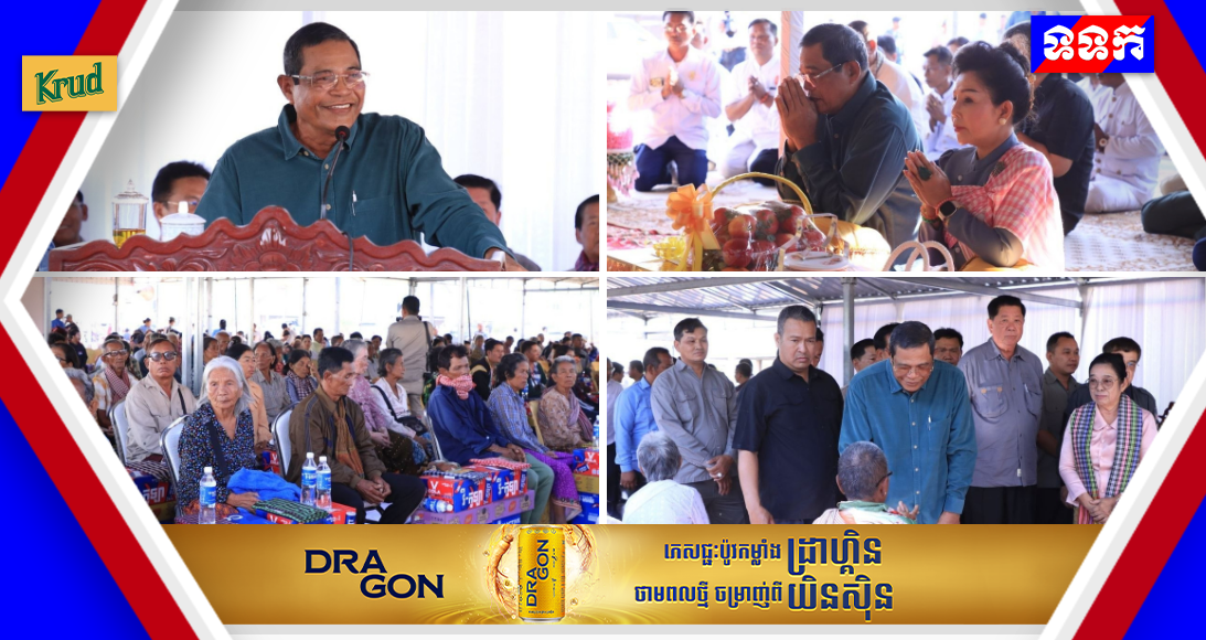 ខេត្តបន្ទាយមានជ័យ : នៅថ្ងៃទី៩ ខែមេសា ឆ្នាំ២០២៦ នេះ ឯកឧត្តម កែ គឹមយ៉ាន ឧត្តមប្រឹក្សាផ្ទាល់ព្រះមហាក្សត្រ និងជាអ្នកតំណាងរាស្ត្រមណ្ឌលខេត្តបន្ទាយមានជ័យ និងលោកជំទាវ ឧកញ៉ា អគ្គមហាឧបាសិកាសិរីករុណាបទុមរតន៍បណ្ឌិត ម៉ៅ ម៉ាល័យ អមដោយក្រុមការងារបានធ្វើពិធីសូត្រមន្ត បង្សុកូល និងវេរចង្ហាន់ប្រគេនដល់ព្រះសង្ឃ ដើម្បីឧទ្ទិសកុសលដល់បុព្វការីជន មហាបុព្វបុរសខ្មែរ វីរៈកងទ័ព នគរបាល ដែលបានធ្វើពលីក្នុងបុព្វហេតុការពារទឹកដីព្រមទាំងសំណេះសំណាលសួរសុខទុក្ខជាមួយមនុស្សវ័យចាស់ និវត្តន៍ជន និងជនពិការ ចំនួន ៦០០នាក់នៅមណ្ឌលភៀសសឹក ស្លក្រាម ស្រុកស្វាយចេក ខេត្តបន្ទាយមានជ័យ។