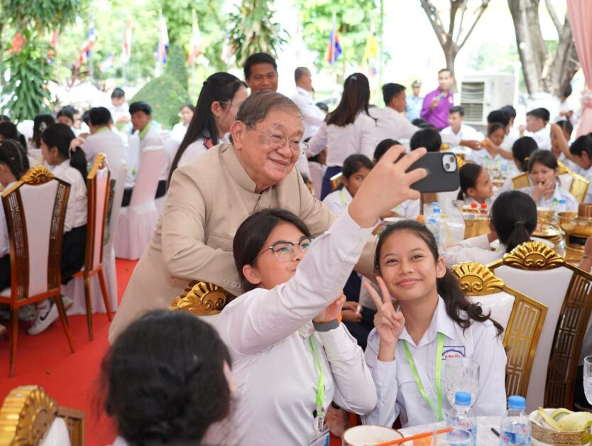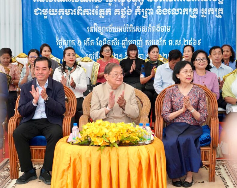 (កំពង់ចាម)៖ ឯកឧត្តម ខៀវ កាញារីទ្ធ ឧត្តមប្រឹក្សាផ្ទាល់ព្រះមហាក្សត្រ និងលោកជំទាវ ទេព រង្សុី រួមជាមួយ ឯកឧត្តម អ៊ុន ចាន់ដា អភិបាល នៃគណៈអភិបាលខេត្តកំពង់ចាម បានអញ្ជើញជួបសំណេះសំណាលសួរសុខទុក្ខ និងពិសាអាហារសាមគ្គី ជាមួយកុមារពិការភ្នែក គថ្លង់ កំព្រា និងលោកគ្រូ អ្នកគ្រូ នៅវិទ្យាល័យអប់រំពិសេសកំពង់ចាម។