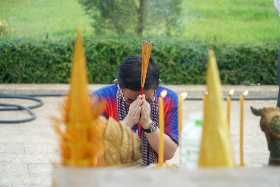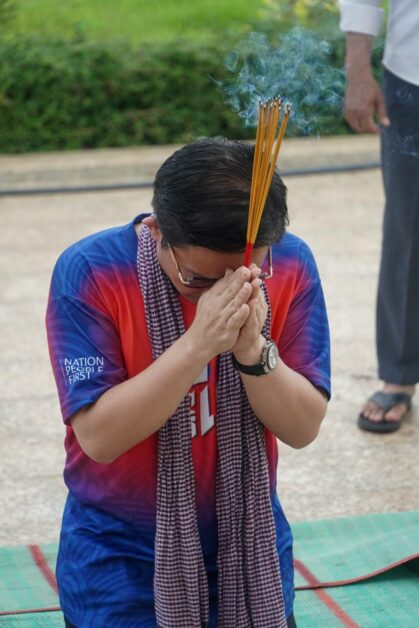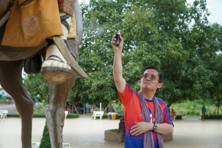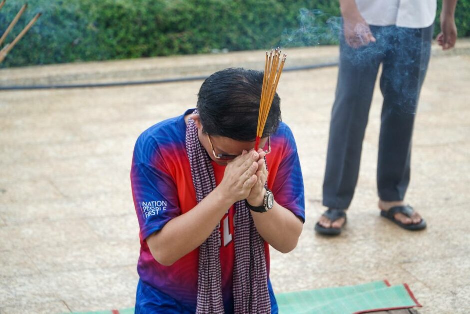ឯកឧត្តមបន្តថា ឋិតក្នុងកាល:ទេស:ដែលប្រទេសជាតិ ទទួលការរំលោភបំពានពីសត្រូវសៀមនាពេលនេះ ទើបថ្នាក់ដឹកនាំគ្រប់លំដាប់ថ្នាក់និងប្រជាពលរដ្ឋបានធ្វើពិធីបួងសួង សុំឱ្យបារមីលើដែនដីកម្ពុជរដ្ឋសីមាមហាសុវណ្ណភូមិតាមជួយថែរក្សាសម្តេចតេជោ ហ៊ុន សែន ប្រធានព្រឹទ្ធសភា និងសម្ដេចបវរធិបតី ហ៊ុន ម៉ាណែត នាយករដ្ឋមន្ត្រីនៃកម្ពុជា ព្រមទាំងថ្នាក់ដឹកនាំផ្សេងៗទៀត ជាពិសេសគឺតាមជួយប្រោសព្រំឃុំគ្រងការពារវីរកងទ័ពនៅសមរភូមិមុខដែលកំពុងឈរជើងយ៉ាងស្វាហាប់ការពារបូរណភាពនិងអធិបតេយ្យភាពកម្ពុជាសូមបានសេចក្តីសុខមានជ័យជំនះនិងជួយរុញច្រានកម្ចាត់ចេញបណ្តេញពួកចោរសៀមឈ្លានពានឱ្យរលាយសាបសូន្យពីទឹកដីកម្ពុជា។