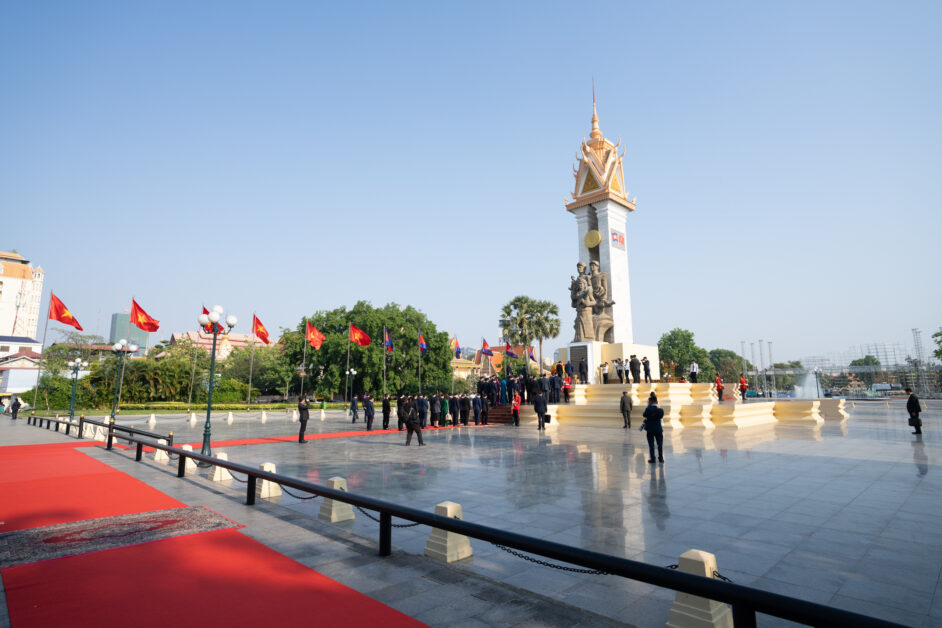 ឯកឧត្តម ត្រិន កឹមទូ (Tran Cam Tu) សមាជិកការិយាល័យនយោបាយ និងជាសមាជិកប្រចាំការគណៈលេខាធិការមជ្ឈិមបក្សកុម្មុយនីស្តវៀតណាម អញ្ជើញដឹកនាំប្រតិភូវៀតណាម ដាក់កម្រងផ្កាគោរពវិញ្ញាណក្ខន្ធនៅស្តូបអនុស្សាវរីយ៍មិត្តភាពកម្ពុជា-វៀតណាម