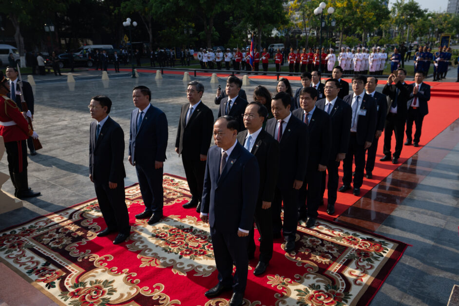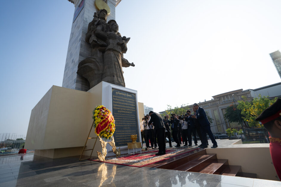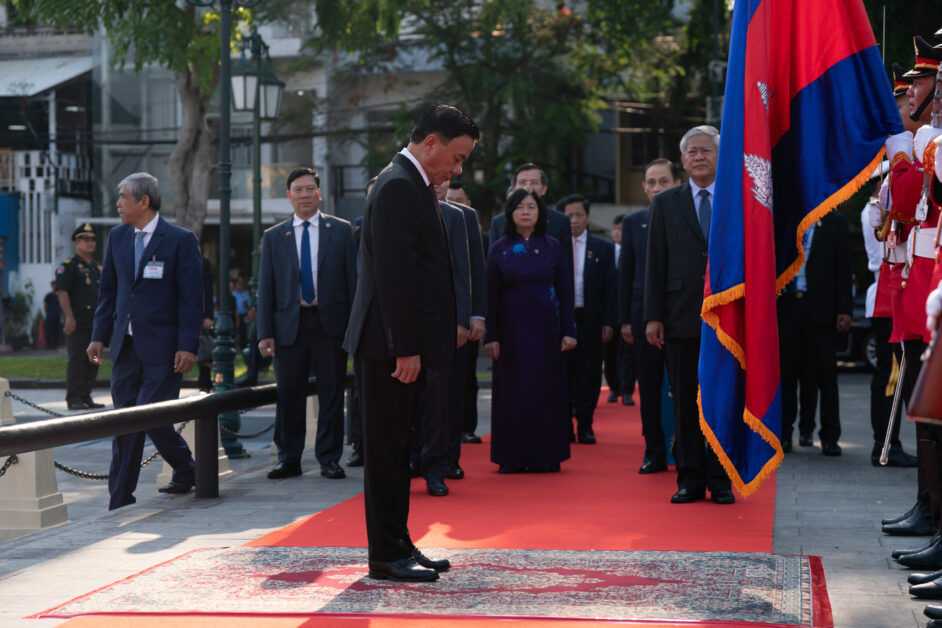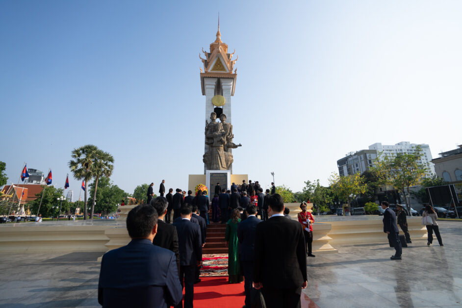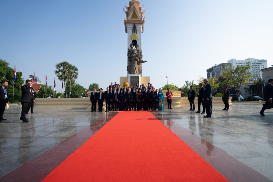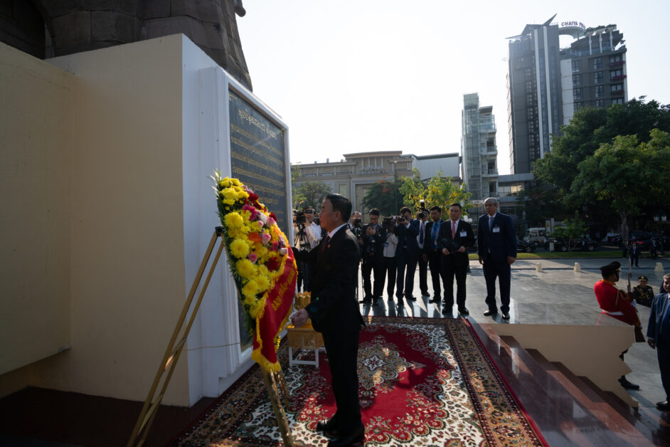 ឯកឧត្តម ត្រិន កឹមទូ (Tran Cam Tu) សមាជិកការិយាល័យនយោបាយ និងជាសមាជិកប្រចាំការគណៈលេខាធិការមជ្ឈិមបក្សកុម្មុយនីស្តវៀតណាម អញ្ជើញដឹកនាំប្រតិភូវៀតណាម ដាក់កម្រងផ្កាគោរពវិញ្ញាណក្ខន្ធនៅស្តូបអនុស្សាវរីយ៍មិត្តភាពកម្ពុជា-វៀតណាម