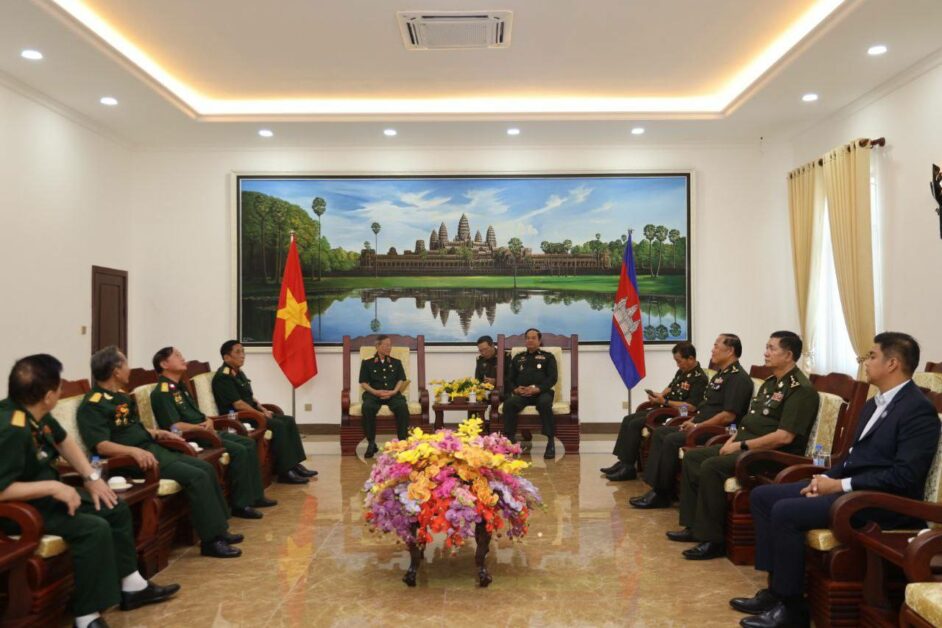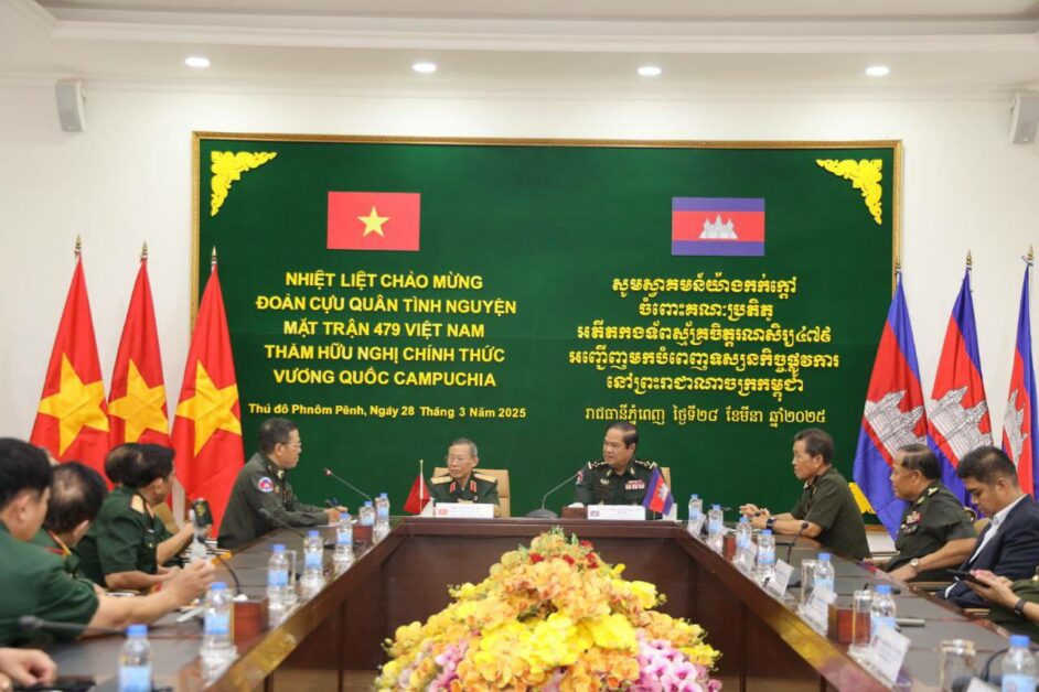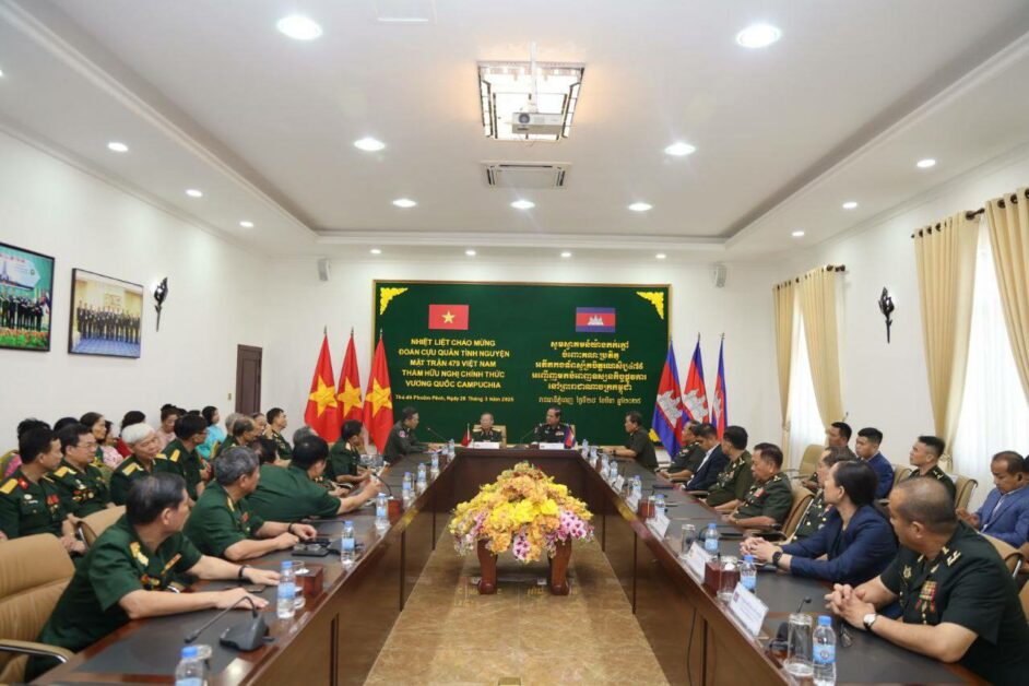 (កណ្តាល)÷ កាលពីរសៀលថ្ងៃទី២៨ ខែមីនា ឆ្នាំ២០២៥នេះ ឯកឧត្តម នាយឧត្តមសេនីយ៍ កិត្តិសង្គហបណ្ឌិត គន់ គីម អនុប្រធាន និងជា អគ្គលេខាធិការ សមាគមអតីតយុទ្ធជនកម្ពុជា បានអនុញ្ញាតឱ្យ គណៈប្រតិភូកងទ័ពស្ម័គ្រចិត្តរណសិរ្ស៤៧៩ វៀតណាម ដឹកនាំដោយ ឯកឧត្តម ឧត្តមសេនីយ៍ទោ ឡេ មិញគឿក អតីតប្រធានស្នងការនយោបាយ បញ្ជាការដ្ឋានយោធភូមិភាគទី២ ចូលជួបសម្តែងការគួរសម នៅទីស្នាក់ការកណ្តាលសមាគមអតីតយុទ្ធជនកម្ពុជា ស្ថិតក្នុងភូមិស្លាបតាអោន ឃុំគគី ស្រុកកៀនស្វាយ ខេត្តកណ្តាល ។
