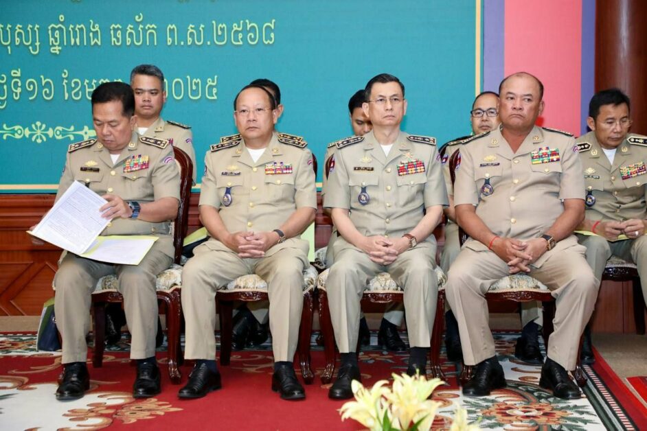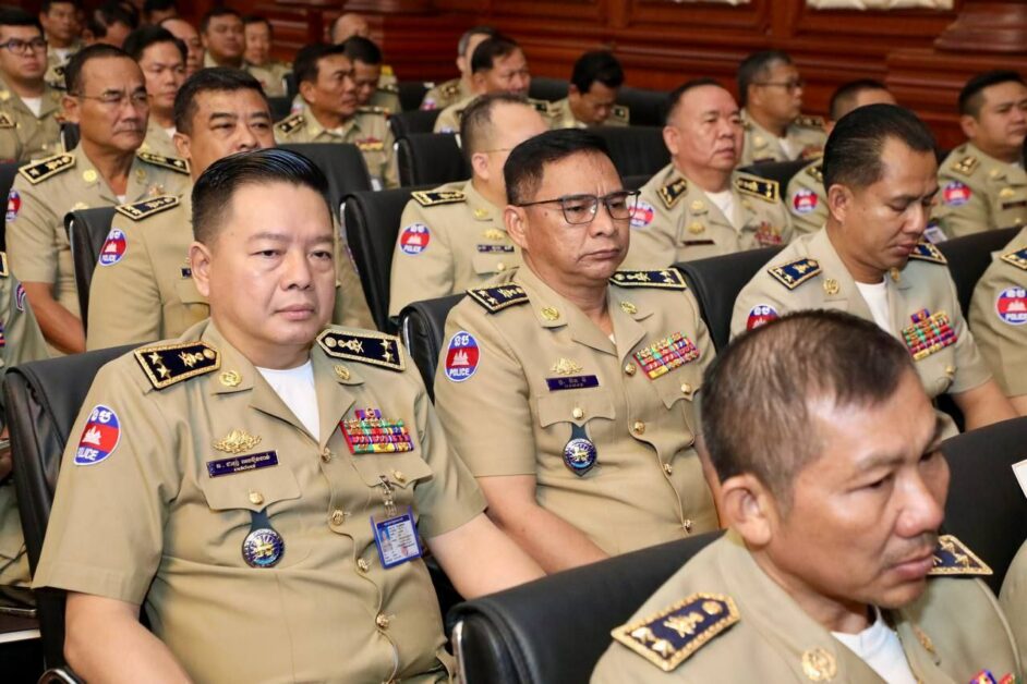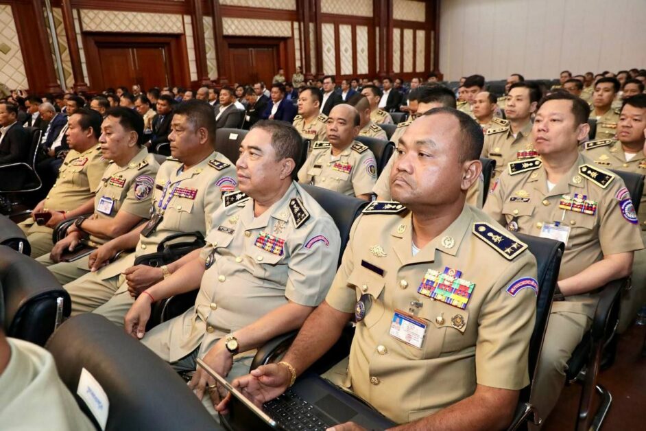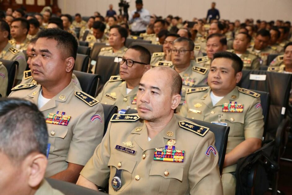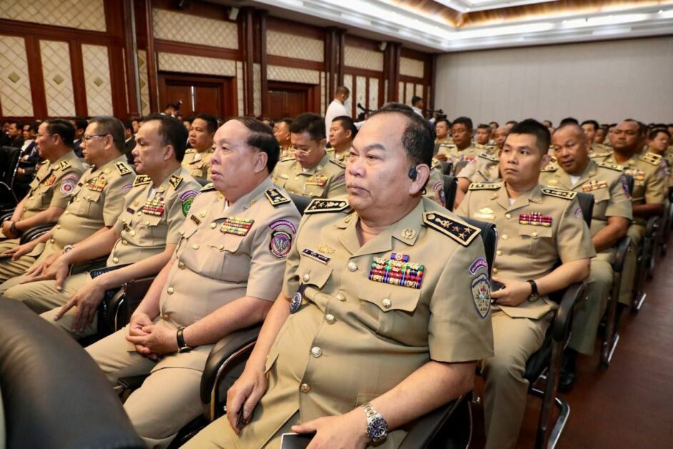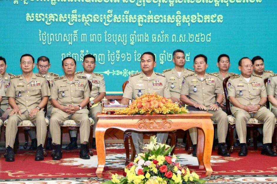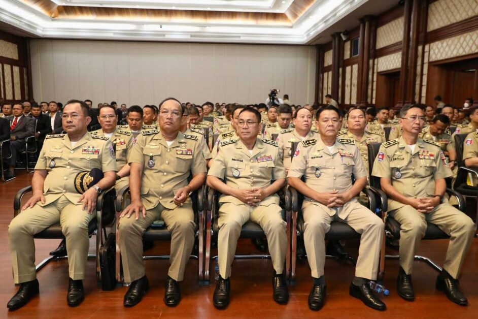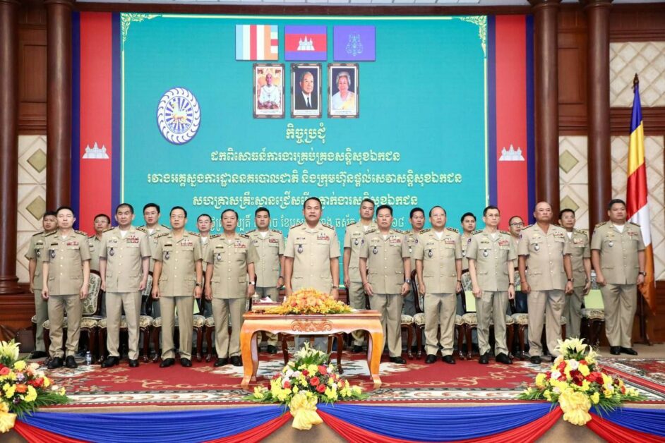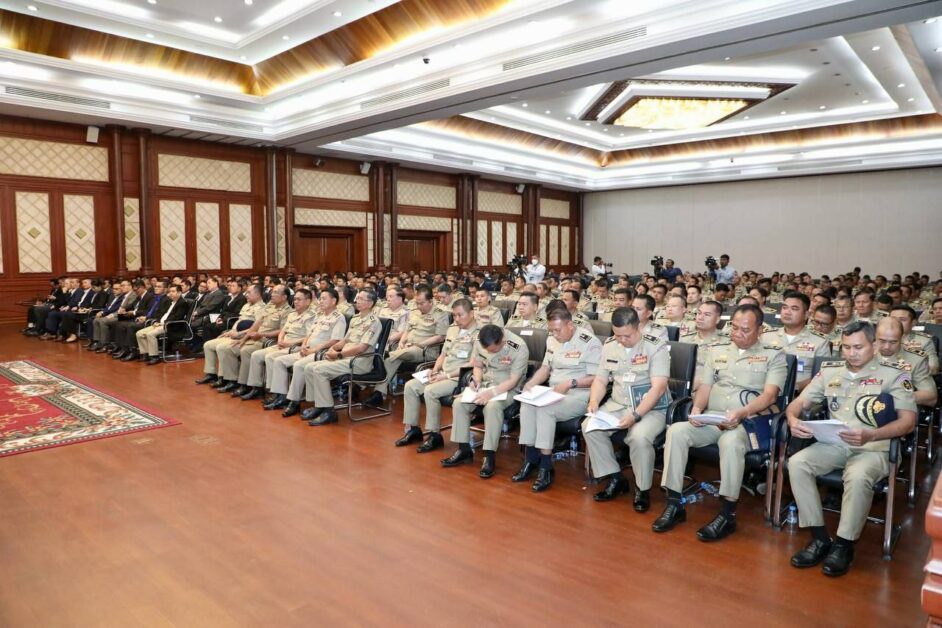 ឯកឧត្តម នាយឧត្តមសេនីយ៍ ស ថេត អញ្ជើញជាអធិបតីភាពក្នុងកិច្ចប្រជុំដកពិសោធន៍ការងារគ្រប់គ្រងសន្តិសុខឯកជន រវាងអគ្គស្នងការដ្ឋាននគរបាលជាតិ និងក្រុមហ៊ុនផ្តល់សេវាសន្តិសុខឯកជន សហគ្រាស គ្រឹះស្ថានជ្រើសរើសភ្នាក់ងារសន្តិសុខជកជន នៅសាលប្រជុំ អគារ S នៃទីស្តីការក្រសួងមហាផ្ទៃ