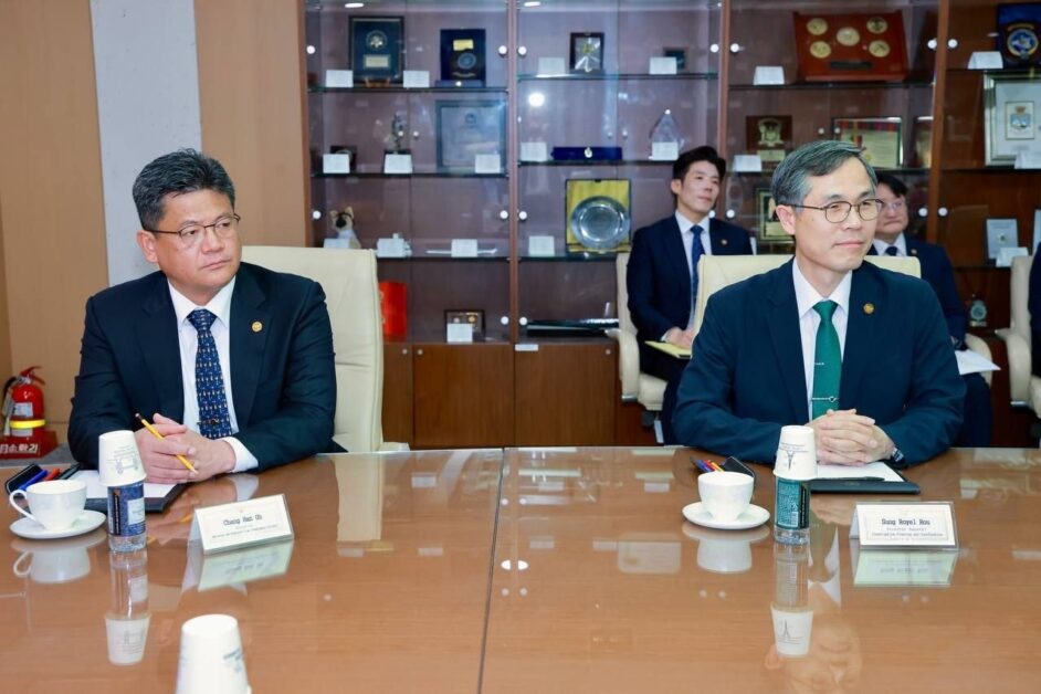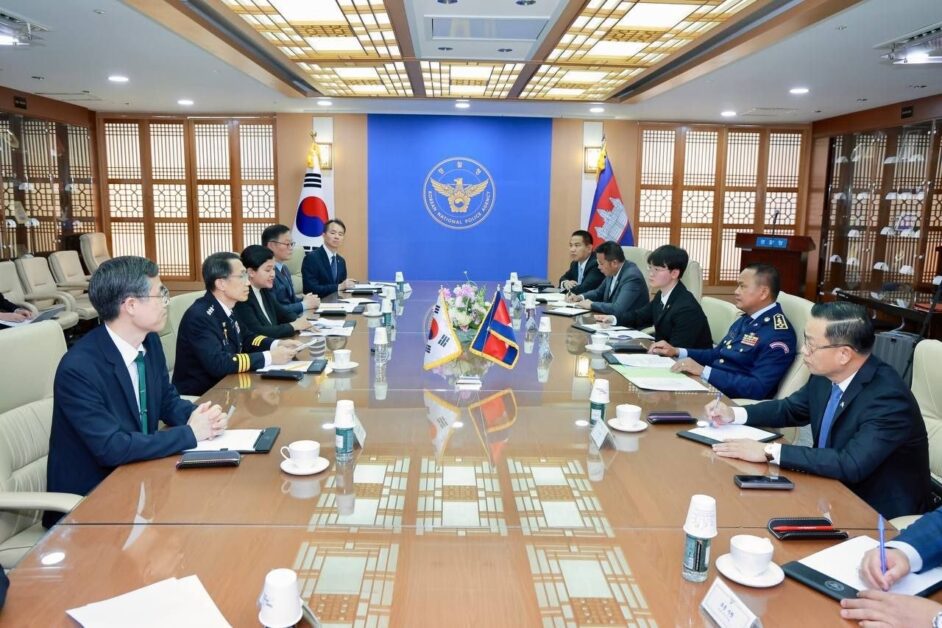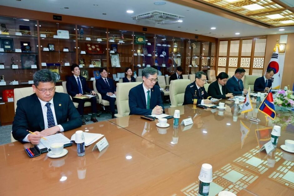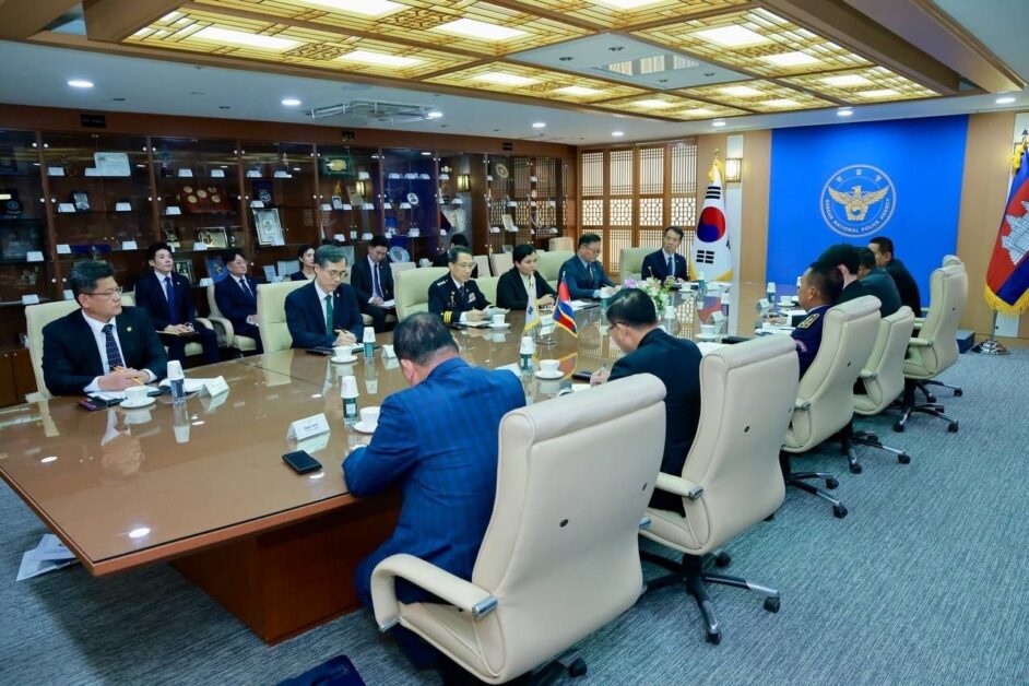 រដ្ឋធានីសេអ៊ូល ៖ ព្រឹកថ្ងៃពុធ ទី២៩ ខែមេសា ឆ្នាំ២០២៦ នេះ ឯកឧត្តម នាយឧត្តមសេនីយ៍ ស ថេត អគ្គស្នងការនគរបាលជាតិ ដឹកនាំគណៈប្រតិភូជាន់ខ្ពស់ នៃអគ្គស្នងការដ្ឋាននគរបាលជាតិ ក្រសួងមហាផ្ទៃ នៃព្រះរាជាណាចក្រកម្ពុជា ជួបប្រជុំ និងពិភាក្សាការងារជាមួយ ឯកឧត្តម Yoo Jae Seong អគ្គស្នងការស្តីទី នៃទីភ្នាក់ងារនគរបាលជាតិកូរ៉េ នៅទីបញ្ជាការទីភ្នាក់ងារនគរបាលជាតិកូរ៉េ នៅទីក្រុងសេអ៊ូល នៃសាធារណរដ្ឋកូរ៉េ។