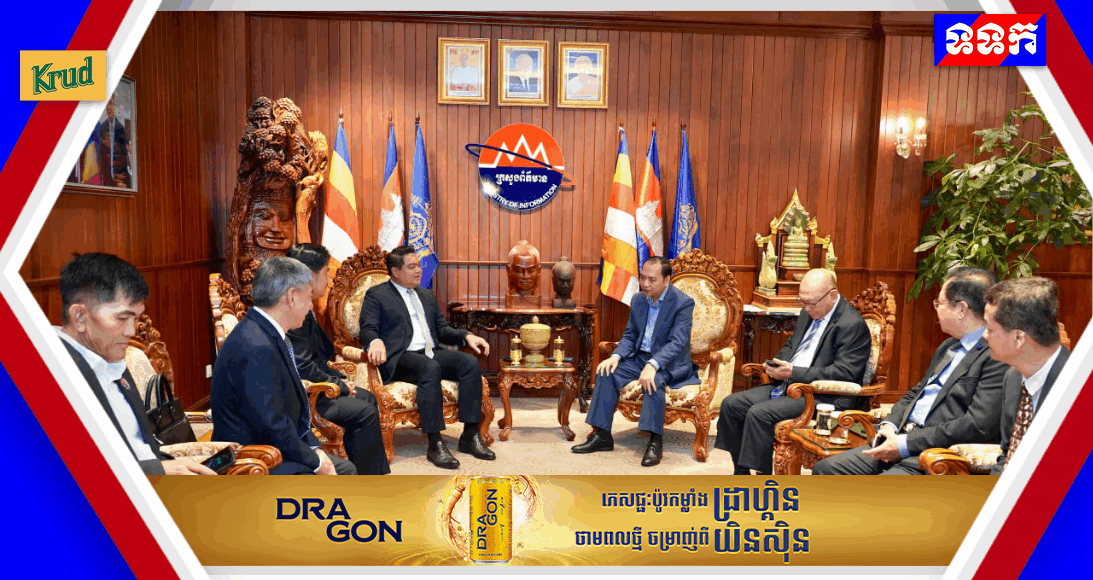 ( ភ្នំេពេញ )៖ ឯកឧត្តម នេត្រ ភក្ត្រា រដ្ឋមន្ត្រីក្រសួងព័ត៌មាន នៅព្រឹកថ្ងៃទី១១ ខែវិច្ឆិកា ឆ្នាំ២០២៥ នាទីស្តីការក្រសួង បានទទួលពិភាក្សាការងារជាមួយ ឯកឧត្តម គីម វីរៈ អគ្គលេខាធិការ គណៈកម្មាធិការជាតិគ្រប់គ្រងគ្រោះមហន្តរាយ ដើម្បីពង្រឹងកិច្ចសហការក្នុងការពង្រីកការផ្សព្វផ្សាយព័ត៌មានស្តីពីកិច្ចការត្រៀមបង្ការ និងឆ្លើយតបគ្រោះមហន្តរាយ បានកាន់តែទូលំទូលាយដល់ប្រជាពលរដ្ឋ ដែលជាការងារសំខាន់ក្នុងការកាត់បន្ថយហានិភ័យគ្រោះមហន្តរាយ និងការគ្រប់គ្រងគ្រោះអាសន្ន ។
