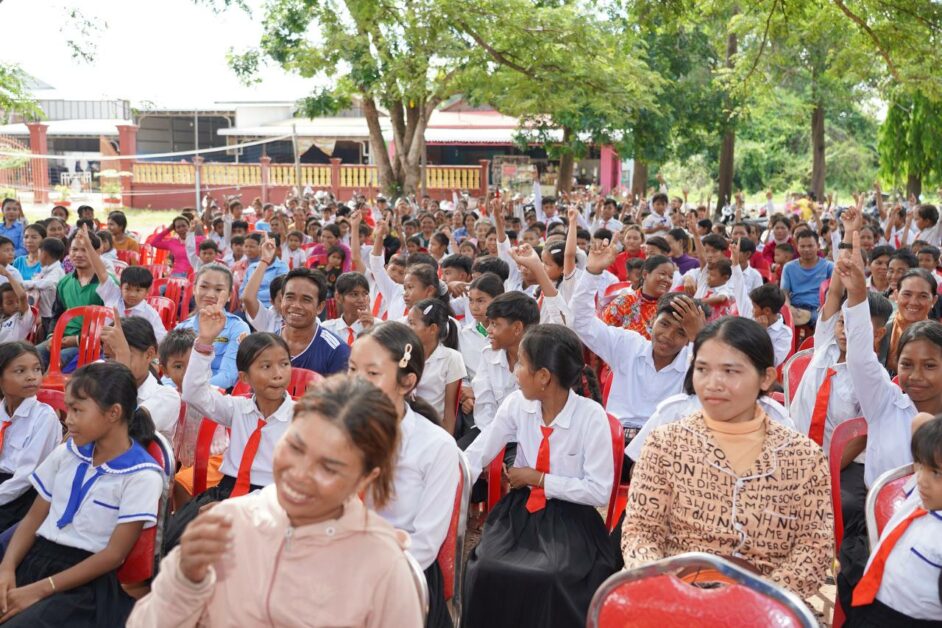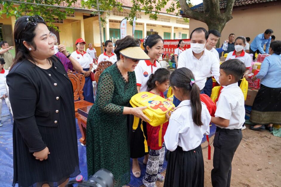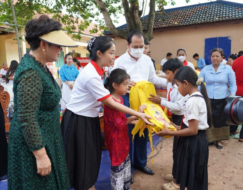 (ភ្នំពេញ)៖ អបអរសាទរខួបលើកទី៧៦ ទិវាកុមារអន្ដរជាតិ និងទិវាកុមារកម្ពុជា ១មិថុនា ខួបលើកទី២៤ ឆ្នាំ២០២៥, ឯកឧត្តម នេត្រ ភក្ត្រា រដ្ឋមន្ត្រីក្រសួងព័ត៌មាន និង លោកជំទាវ ទុយ សិរីរតនៈ នេត្រ ភក្រ្តា ប្រធានកិត្តិយសសមាគមនារីកម្ពុជាដើម្បីសន្តិភាពនិងអភិវឌ្ឍន៍សាខាក្រសួងព័ត៌មាន បាននាំយកនូវ សម្ភារៈសិក្សា ស្បៀងអាហាររបស់សមាគមសហជីពអាជីវករហ៊ូនណាន នៃកម្ពុជា ចែកជូនសិស្សានុសិស្សចំនួន ៤០០នាក់ នៅសាលាបឋមសិក្សាដំរីផុង ស្រុកឆ្លូង ខេត្តក្រចេះ នៅរសៀលថ្ងៃទី០១ ខែមិថុនា ឆ្នាំ២០២៥ ។