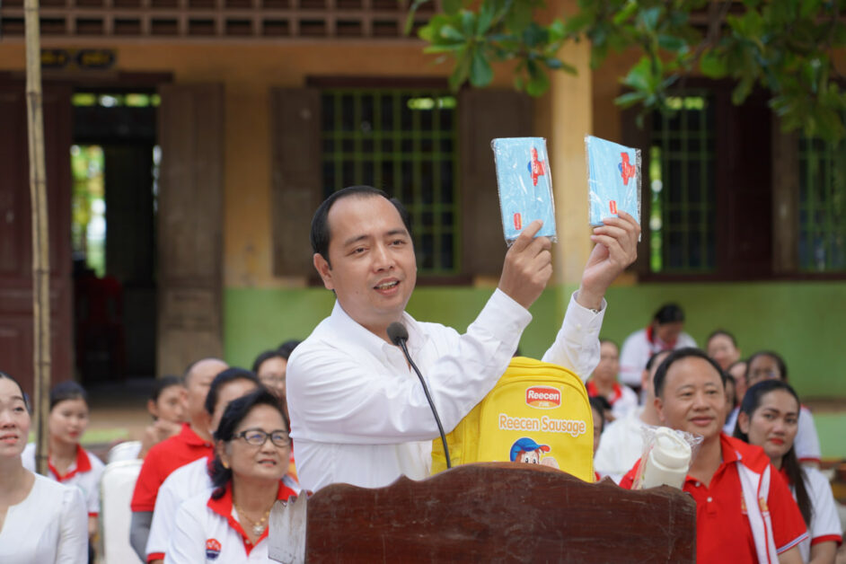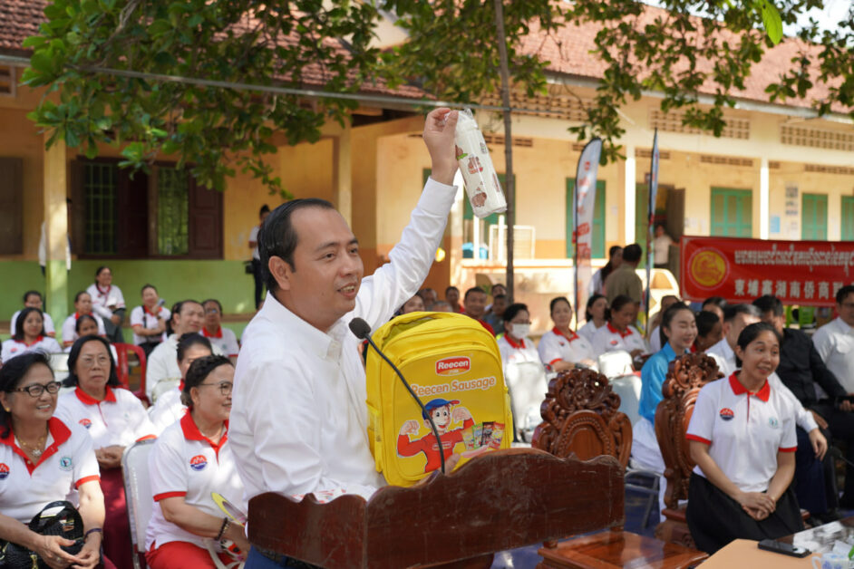 ឯកឧត្តម រដ្ឋមន្ត្រី នេត្រ ភក្ត្រា គូសបញ្ជាក់ថាថា អំណោយជា កាតាប សម្ភារៈសិក្សា នំចំណី ទឹកសុទ្ធ និងភេសជ្ជៈ ទាំងនេះ គឺទទួលបានការគាំទ្រពី សមាគមសហជីពអាជីវករហ៊ូនណាន នៃកម្ពុជា ដែលបានចូលរួមចំណែកចែករំលែកក្តីស្រឡាញ់ជាមួយក្រសួងព័ត៌មាន និងក្រុមការងាររាជរដ្ឋាភិបាលចុះមូលដ្ឋានខេត្តក្រចេះ សម្រាប់នាំយកមកចែកផ្ទាល់ដៃជូនដល់សិស្សានុសិស្សនៅសាលាបឋម សិក្សាដំរីផុង ស្រុកឆ្លូង ខេត្តក្រចេះ។