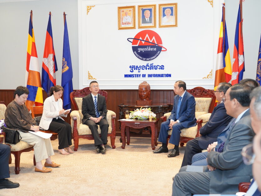 ឯកឧត្តម នេត្រ ភក្ត្រា រដ្ឋមន្ត្រីក្រសួងព័ត៌មាន ទទួលជួបពិភាក្សាការងារជាមួយ អនុរដ្ឋលេខាធិការមន្ទីរឃោសនាការនៃគណៈកម្មធិការខេត្តយូណាន ប្រទេសចិន ដើម្បីបន្តពង្រឹងពង្រីកកិច្ចសហប្រតិបត្តិការលើវិស័យព័ត៌មាន និងផ្សព្វផ្សាយនៃប្រទេសទាំងពីរ កម្ពុជា ចិន