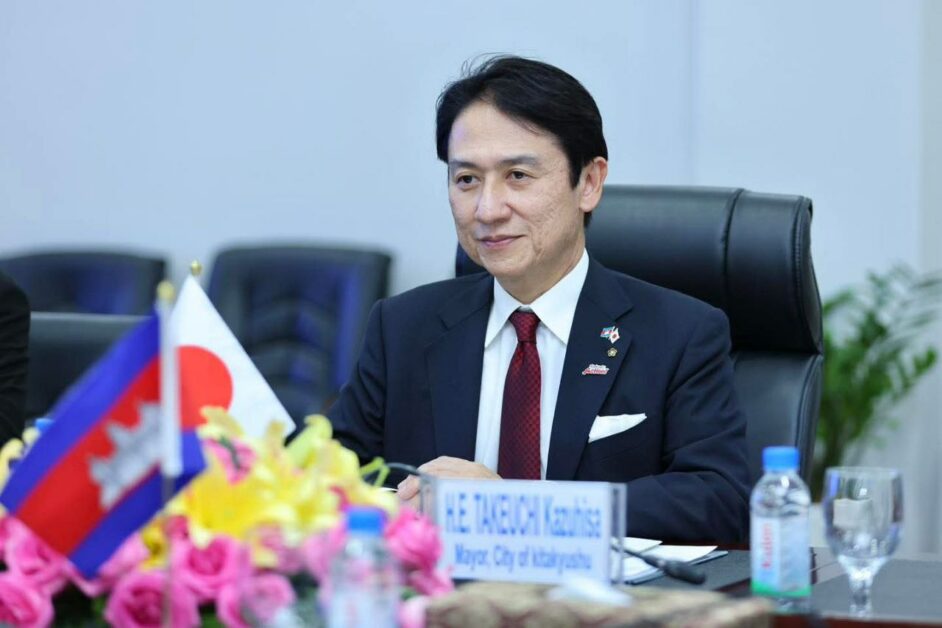 ឯកឧត្តម ប៉េង ពោធិ៍នា រដ្ឋមន្ត្រីក្រសួងសាធារណការ និងដឹកជញ្ជូន ទទួលជួប ឯកឧត្តម TAKEUCHI KAZUHISA (តាកិអ៊ឹឈិ កាសឹហ៊ីសា) អភិបាលក្រុងគីតាខ្យឺសឺ (KITAKYUSHU) និងគណៈប្រតិភូការិយាល័យទឹកស្អាត និងទឹកកខ្វក់ ទីក្រុងគីតាខ្យឺសឺ (Kitakyushu Water and Sewer Bureau) និងសមាគមអាជីវកម្មទឹកក្រៅប្រទេស នៃទីក្រុងគីតាខ្យឺសឺ (Kitakyushu City Oversea Water Business Association–KOWBA) ប្រទេសជប៉ុន