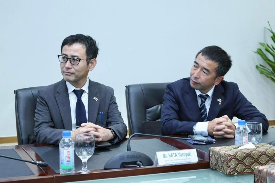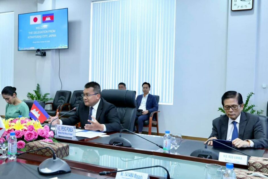 ទីស្តីការក្រសួង៖ នារសៀលថ្ងៃព្រហស្បតិ៍ ទី៣០ ខែតុលា ឆ្នាំ២០២៥ ឯកឧត្តម ប៉េង ពោធិ៍នា រដ្ឋមន្ត្រីក្រសួងសាធារណការ និងដឹកជញ្ជូន បានអនុញ្ញាតឱ្យ ឯកឧត្តម TAKEUCHI KAZUHISA (តាកិអ៊ឹឈិ កាសឹហ៊ីសា) អភិបាលក្រុងគីតាខ្យឺសឺ (KITAKYUSHU) និងគណៈប្រតិភូការិយាល័យទឹកស្អាត និងទឹកកខ្វក់ ទីក្រុងគីតាខ្យឺសឺ (Kitakyushu Water and Sewer Bureau) និងសមាគមអាជីវកម្មទឹកក្រៅប្រទេស នៃទីក្រុងគីតាខ្យឺសឺ ប្រទេសជប៉ុន (Kitakyushu City Oversea Water Business Association–KOWBA) ចូលជួបសម្តែងការគួរសម និងពិភាក្សាការងារ ដោយមានការចូលរួមពី ឯកឧត្តម លោកជំទាវ ថ្នាក់ដឹកនាំក្រសួង និងមន្រ្តីពាក់ព័ន្ធ។