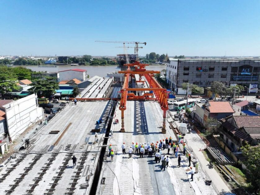 រាជធានីភ្នំពេញ៖ នាព្រឹកថ្ងៃអាទិត្យ ទី៣០ ខែវិច្ឆិកា ឆ្នាំ២០២៥ ឯកឧត្តម ប៉េង ពោធិ៍នា រដ្ឋមន្រ្តីក្រសួងសាធារណការ និងដឹកជញ្ជូន បានដឹកនាំប្រតិភូក្រសួង និងមន្ត្រីជំនាញបច្ចេកទេស ចុះពិនិត្យការរំកិលធ្នឹមស្ពាននៅចន្លោះសសរស្ពានទី៥ កាត់ពីលើផ្លូវជាតិលេខ២ នៃគម្រោងសាងសង់ស្ពានឆ្លងកាត់ទន្លេបាសាក់ (ចាក់អង្រែក្រោម-ព្រែកប្រា)។