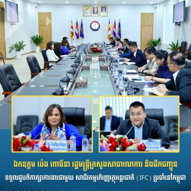 ឯកឧត្តម ប៉េង ពោធិ៍នា រដ្ឋមន្រ្តីក្រសួងសាធារណការ និងដឹកជញ្ជូន ទទួលជួបពិភាក្សាការងារជាមួយ សាជីវកម្មហិរញ្ញវត្ថុអន្តរជាតិ (IFC) ប្រចាំនៅកម្ពុជា