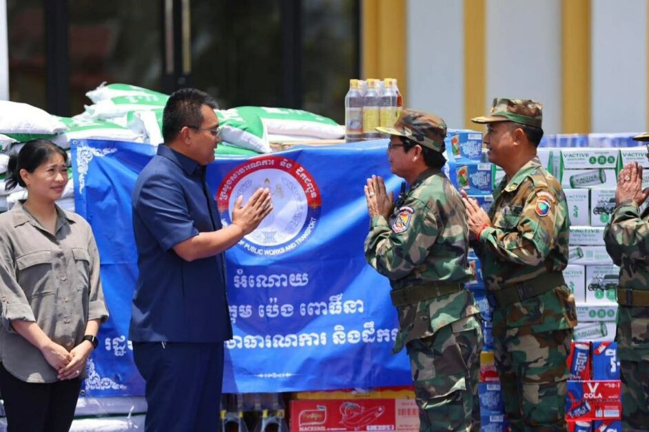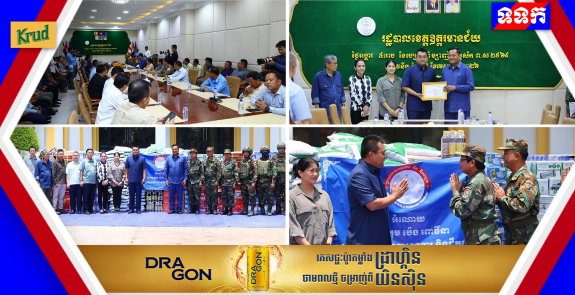 ខេត្តឧត្តរមានជ័យ៖ នាព្រឹកថ្ងៃអង្គារ ទី៧ ខែមេសា ឆ្នាំ២០២៦ ឯកឧត្តម ប៉េង ពោធិ៍នា រដ្ឋមន្ត្រីក្រសួងសាធារណការ និងដឹកជញ្ជូន ព្រមទាំងលោកជំទាវ អញ្ជើញដឹកនាំគណៈប្រតិភូក្រសួង ចុះសំណេះសំណាល សួរសុខទុក្ខ និងនាំយកអំណោយចែកជូនដល់វីរកងទ័ពជួរមុខ រួមមាន កងការពារព្រំដែនគោកលេខ៤០២ លេខ៤០៣ និងបញ្ជាការដ្ឋានកាំភ្លើងធំ អគ្គបញ្ជាការដ្ឋាន ដែលស្ថិតនៅក្នុងភូមិសាស្រ្តខេត្តឧត្តរមានជ័យ។ ក្នុងឱកាសនេះ ក៏មានការចូលរួមពី ឯកឧត្តម មាន ចាន់យ៉ាដា អភិបាលនៃគណៈអភិបាលខេត្តឧត្តរមានជ័យ ឯកឧត្តម លោកជំទាវ ថ្នាក់ដឹកនាំក្រសួង ឯកឧត្តមឧត្តមសេនីយ៍ត្រី មាស ប៊ុង មេបញ្ជាការរង បញ្ជាការដ្ឋានកាំភ្លើងធំ អគ្គបញ្ជាការដ្ឋាន លោកវរសេនីយ៍ត្រី សៀក សំអ៊ុល មេបញ្ជាការស្តីទី កងការពារព្រំដែនគោកលេខ៤០២ លោកវរសេនីយ៍ឯក ជុំ សេង មេបញ្ជាការកងការពារព្រំដែនគោកលេខ៤០៣ ព្រមទាំងមន្ត្រីពាក់ព័ន្ធជាច្រើនរូប។