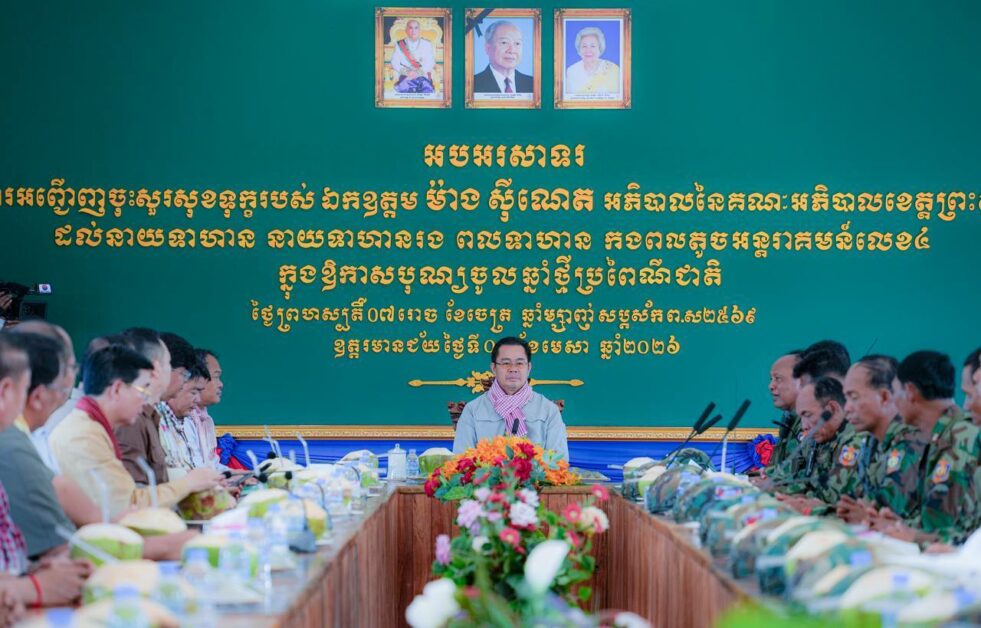 ខេត្តព្រះសីហនុ ៖ ព្រឹកថ្ងៃទី៩ ខែមេសា ឆ្នាំ២០២៦ ឯកឧត្តម ម៉ាង ស៊ីណេត អភិបាលនៃគណៈអភិបាលខេត្តព្រះសីហនុ បានដឹកនាំគណៈប្រតិភូ ចុះសួរសុខទុក្ខនាយទាហាន នាយទាហានរង និងពលទាហាន នៃកងពលតូចអន្តរាគមន៍លេខ៤ ស្ថិតក្នុងស្រុកបន្ទាយអំពិល ខេត្តឧត្តរមានជ័យ ដើម្បីអបអរសាទរពិធីបុណ្យចូលឆ្នាំថ្មីប្រពៃណីជាតិខ្មែរ ដែលនឹងឈានចូលមកដល់នាពេលឆាប់ៗខាងមុខ។