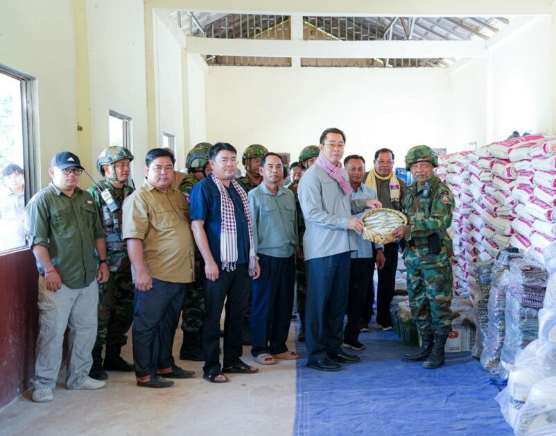 ដើម្បីជាការលើកទឹកចិត្ត ឯកឧត្តមអភិបាលខេត្ត បានពាំនាំនូវអំណោយដ៏ថ្លៃថ្លារបស់ សម្តេចធិបតី ហ៊ុន ម៉ាណែត និងលោកជំទាវបណ្ឌិត ផ្តល់ជូនកងពលតូចអន្តរាគមន៍លេខ៤ រួមមាន គ្រឿងឧបភោគ បរិភោគ ថ្នាំពេទ្យ សម្ភារៈប្រើប្រាស់សរុបចំនួន ២៥មុខ និងថវិកាឧបត្ថម្ភ ចំនួន ៤០លានរៀល។