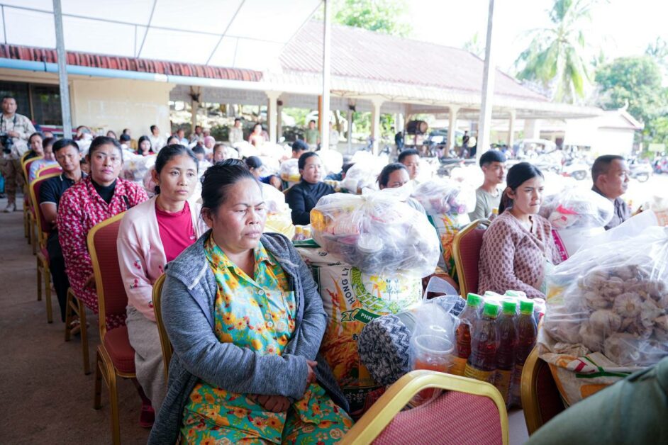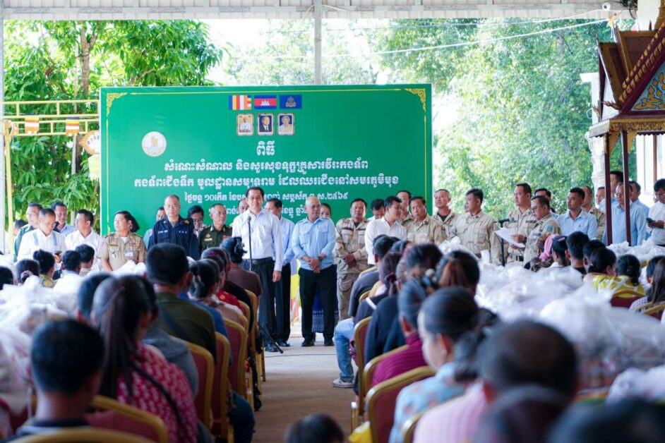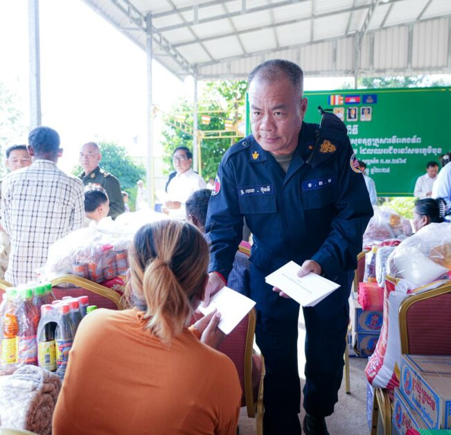 អំណោយជាសម្ភារៈរបស់សប្បុរសជនចែកជូនដល់គ្រួសារកងទ័ពជួមុខចំនួន ៩៨គ្រួសារ៖ ក្នុងមួយគ្រួសារទទួលបានអង្ករ ៥០គីឡូក្រាម កន្ទេល១ ភួយ១ មី២កេស ទឹកសុទ្ធ ២កេស ទឹកត្រី១យួរ ទឹកស៊ីអ៉ីវ១យួរ ឃីតគ្រឿងទេសមួយកញ្ជប់ ( បង្គារក្រៀម ត្រីងៀត ត្រសក់ចាវ គីឆា ខ្ទឹមសរ ប៊ីចេង ស្កសរ ប្រេងឆា ត្រីខ ប្រហុក និងថវិកា ៥០ម៉ឺនរៀល៕