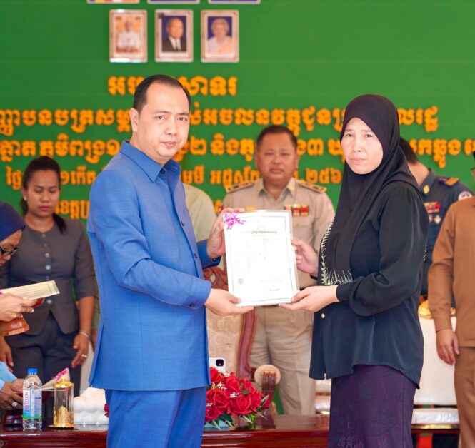 ការថ្លែងអំណរគុណរបស់ ឯកឧត្តមរដ្ឋមន្ត្រី នេត្រ ភក្ត្រា បានធ្វើឡើងក្នុងពិធីប្រគល់វិញ្ញាបនបត្រសម្គាល់ម្ចាស់អចលនទ្រព្យ ជូនដល់ប្រជាពលរដ្ឋចំនួន ២,៣៤០គ្រួសារ ស្មើ ៣,៨២០បណ្ណ នៅព្រឹកថ្ងៃទី២៧ ខែមេសា ឆ្នាំ២០២៦ នាបរិវេណវត្តមុនីសាគរ ហៅវត្តដងក្តោង ស្ថិតនៅភូមិដងក្តោង ឃុំពង្រ ស្រុកឆ្លូង ខេត្តក្រចេះ។