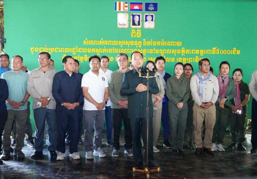 ចែកអំណោយជូនដល់បងប្អូនប្រជាពលរដ្ឋ ដែលបានជម្លៀសដោយស្ម័គ្រចិត្តមកកាន់មណ្ឌលសុវត្ថិភាព វត្តពោធិ៍ ៥០០០ដើម ស្ថិតនៅ ភូមិគូលែនត្បូង ឃុំគូលែនត្បូង ស្រុកគូលែន ខេត្តព្រះវិហារ នៅព្រឹកថ្ងៃទី២៤ ខែមិថុនា ឆ្នាំ២០២៥ ។