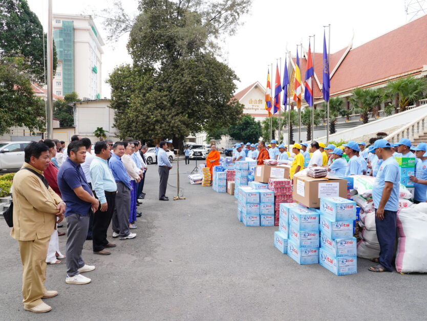 អង្ករ , ទឹកត្រី ទឹក ស៊ីអ៊ីវ , មី, ស្ករស , អំបិល , រ៉ូឌី , ភេសជ្ជ និងថវិកា ១លានរៀល ។