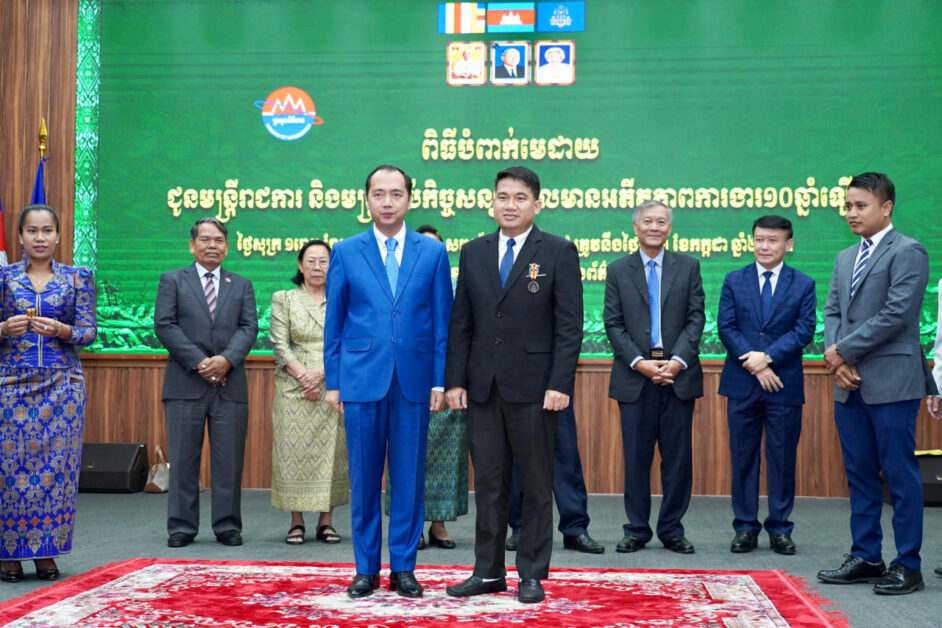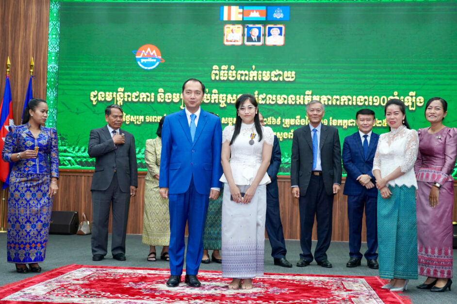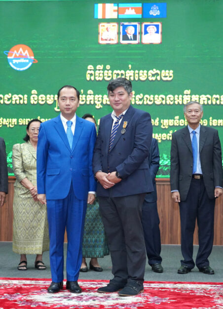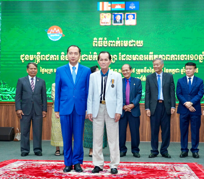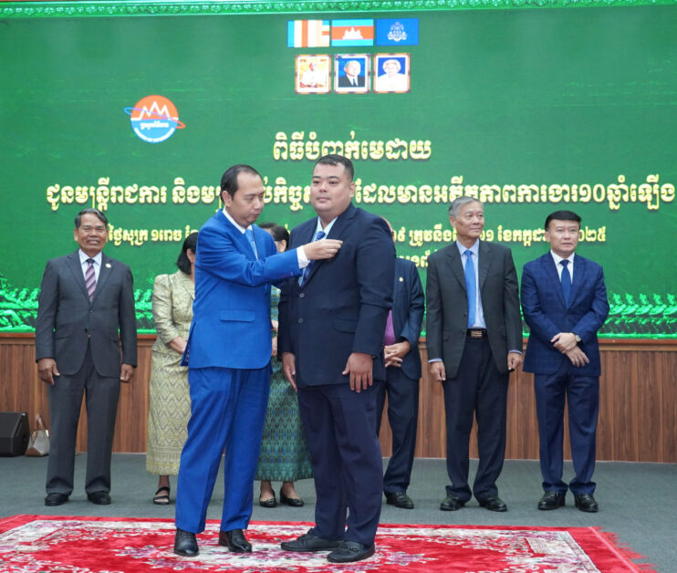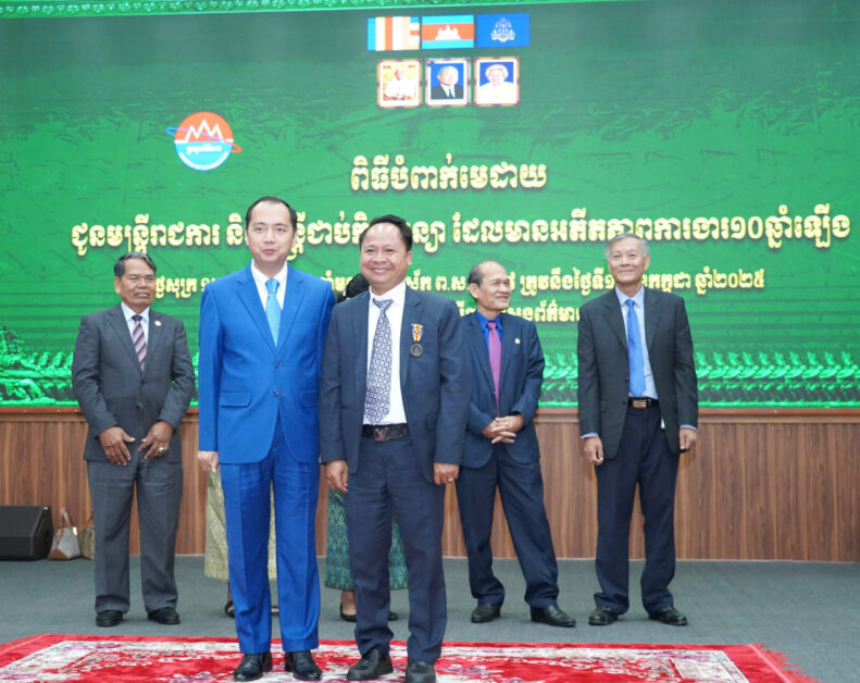 ( ភ្នំពេញ )៖ មន្ត្រីរាជការ មន្ត្រីជាប់កិច្ចសន្យា នៃក្រសួងព័ត៌មាន ចំនួន ២៩៨រូប ដែលមានអតីតភាពការងារ ១០ឆ្នាំឡើង ហើយមានស្នាដៃល្អក្នុងការបំពេញភារកិច្ចបម្រើជាតិមាតុភូមិកន្លងមក ត្រូវបានប្រមុខរាជរដ្ឋាភិបាល ផ្តល់ជូនមេដាយ “ សំរឹទ្ធការងារ “ ហើយមេដៃទាំងអស់ត្រូវបាន ឯកឧត្តម នេត្រ ភក្ត្រា រដ្ឋមន្ត្រីក្រសួងព័ត៌មាន ធ្វើពិធីបំពាក់ជូននៅរសៀលថ្ងៃទី១១ ខែកក្កដា ឆ្នាំ២០២៥ នាសាលចតុម្មុខមង្គលទីស្តីការក្រសួងព័ត៌មាន ៕