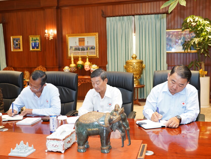 ឯកឧត្តម នេត្រ ភក្ត្រា រដ្ឋមន្ត្រីក្រសួងព័ត៌មាន និងលោកជំទាវ ម៉ែន នារីសោភ័គ អគ្គលេខាធិការរងទី១ កាកបាទក្រហមកម្ពុជា និងជាអនុប្រធានអចិន្ត្រៃយ៍ក្រុមការងារឥស្សរជនឆ្នើមថ្នាក់ជាតិ នៅថ្ងៃទី៤ ខែសីហា ឆ្នាំ២០២៥ នាទីស្តីការក្រសួងព័ត៌មាន បានផ្តោតជាសំខាន់លើគម្រោងនៃកិច្ចសហការគ្នាក្នុងការរៀបចំវគ្គបណ្តុះបណ្តាលដល់អ្នកសារព័ត៌មាន ដើម្បីបង្ហាញឲ្យបានយល់ច្បាស់បន្ថែមទៀតពីតួនាទីរបស់កាកបាទក្រហមកម្ពុជា និងច្បាប់មនុស្សធម៌អន្តរជាតិ ក្នុងបរិបទសង្គ្រាម សម្រាប់ការផ្សព្វផ្សាយឲ្យបានត្រឹមត្រូវ ។