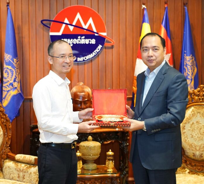 ( ភ្នំេពេញ )៖ ឯកឧត្តម នេត្រ ភក្ត្រា រដ្ឋមន្ត្រីក្រសួងព័ត៌មាន អនុញ្ញាតឱ្យគណៈប្រតិភូវិទ្យុសំឡេងវៀត VOV ដឹកនាំដោយ លោក NGUYEN THANH NAM (ង្វៀន ថាញ់ណាម) លេខាធិការ នៃគណៈកម្មាធិការគ្រប់គ្រងគម្រោងជំនួយកម្ពុជា_ឡាវ វិទ្យុសំឡេងវៀតណាម និងសហការីចូលជួបសម្តែងការគួរសម និងពិភាក្សាការងារ នៅថ្ងៃទី៣១ ខែតុលា ឆ្នាំ២០២៥ នាទីស្តីការក្រសួង ដោយផ្តោតសំខាន់លើការពង្រឹងពង្រីកកិច្ចសហប្រតិបត្តិការលើវិស័យព័ត៌មាន និងសោតទស្សន៍រវាងប្រទេសទាំងពីរកាន់តែល្អប្រសើរបន្ថែមទៀត ៕