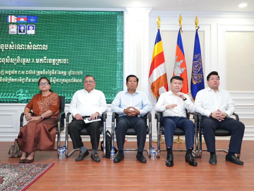 ភ្នំពេញ៖ ឯកឧត្តម នេត្រ ភក្ត្រា រដ្ឋមន្ត្រីក្រសួងព័ត៌មាន និងជាប្រធានក្រុមការងាររាជរដ្ឋាភិបាលចុះមូលដ្ឋានខេត្តក្រចេះ បានអញ្ជើញជួបសំណេះសំណាលជាមួយ សិស្សានុសិស្សនិទ្ទេស A ចំនួន ៤៦នាក់ មកពីខេត្តក្រចេះ នៅរសៀលថ្ងៃទី៩ ខែកុម្ភៈ ឆ្នាំ២០២៦ នាទីស្តីការក្រសួងព័ត៌មាន ។