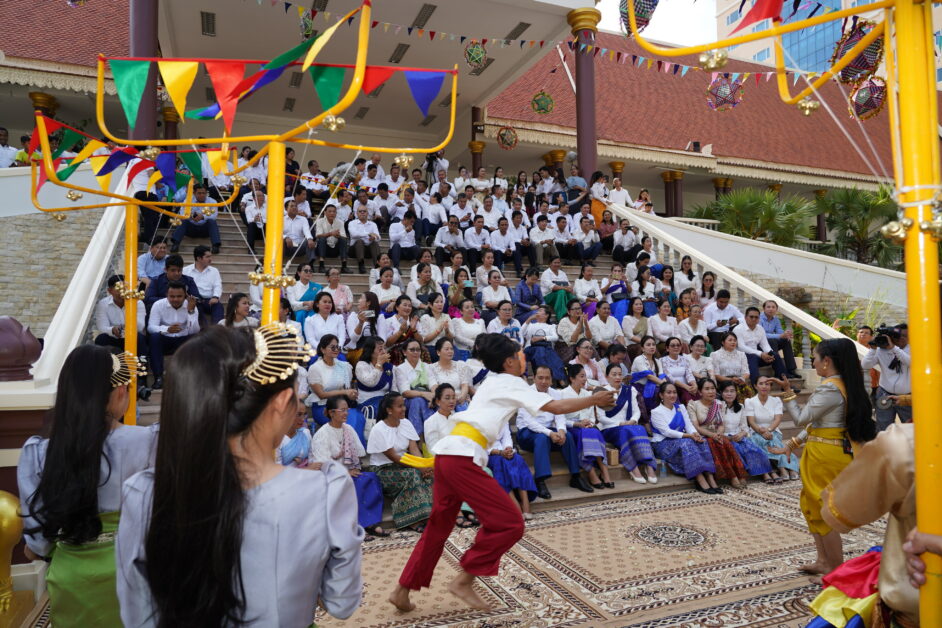 នៅរសៀលថ្ងៃទី៤ ខែមេសា ឆ្នាំ២០២៥ ឯកឧត្តម រដ្ឋមន្ត្រី នេត្រ ភក្ត្រា និងលោកជំទាវ ទុយ សិរីរតនៈ ប្រធានកិត្តិយស សមាគមនារីកម្ពុជាដើម្បីសន្តិភាព និងអភិវឌ្ឍន៍សាខាក្រសួងព័ត៌មាន រួមទាំងថ្នាក់ដឹកនាំ មន្រ្តីរាជការនៃក្រសួងព័ត៌មាន បានអញ្ជើញក្រុមសិល្បៈមកធ្វើការសម្ដែងរបាំត្រុដិ ដើម្បីបណ្ដេញនូវឧបទ្រពចង្រៃក្នុងឆ្នាំចាស់ ផ្លាស់ទទួលអំណរឆ្នាំថ្មីប្រពៃណីជាតិខ្មែរ ឆ្នាំ២០២៥ ។
