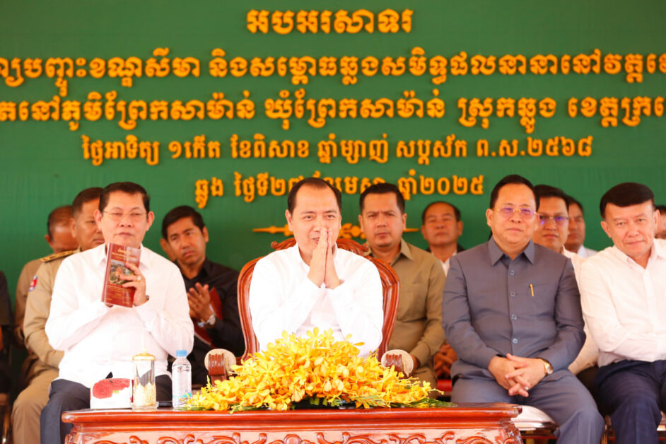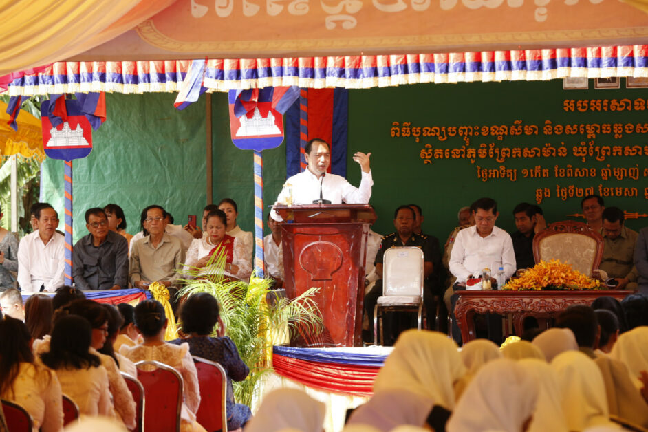 ឯកឧត្តម រដ្ឋមន្ត្រី នេត្រ ភក្ត្រា ប្រធានក្រុមការងាររាជរដ្ឋាភិបាល ចុះមូលដ្ឋានខេត្តក្រចេះអញ្ជើញអធិបតីភាពបញ្ចុះខណ្ឌសីមា ពុទ្ធាភិសេក និងឆ្លងសមិទ្ធផលនានា នៅវត្តវេឡុវ័ន (ព្រែកសាម៉ាន់) ស្រុកឆ្លូង ខេត្តក្រចេះ,