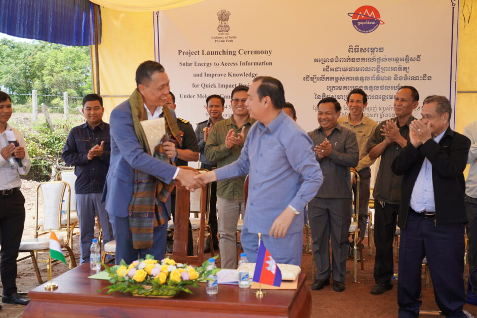 ការថ្លែងអំណរគុណនេះធ្វើឡើងក្នុងឱកាស ឯកឧត្តម នេត្រ ភក្ត្រា រដ្ឋមន្ត្រីក្រសួងព័ត៌មាន និងជាប្រធានក្រុមការងាររាជរដ្ឋាភិបាលចុះមូលដ្ឋានខេត្តក្រចេះ អញ្ជើញជាអធិបតីសម្ពោធគម្រោងបំពាក់ឧបករណ៍ផ្តល់ចរន្តអគ្គិសនីដើរដោយថាមពលពន្លឺព្រះអាទិត្យ ដើម្បីលើកកម្ពស់ការទទួលព័ត៌មាន និងចំណេះដឹង ក្រោមគម្រោងទទួលផលរហ័សនៃកិច្ចសហប្រតិបតិ្តការទន្លេមេគង្គ-គង្គា នៅព្រឹកថ្ងៃទី២៤ ខែឧសភា ឆ្នាំ២០២៥ នាចំណុចអូរក្រុង នៃភូមិព្រែកក្តី ឃុំស្នួល ស្រុកស្នួល ខេត្តក្រចេះ ដោយមានការអញ្ជើញចូលរួមពី ឯកឧត្តម Vanlalvawna Bawitlung ឯកអគ្គរដ្ឋទូតឥណ្ឌាប្រចាំនៅកម្ពុជា និង ឯកឧត្តមកិត្តិបណ្ឌិត ពេជ្រ ប៊ុនធិន អ្នកតំណាងរាស្រ្តខេត្តក្រចេះ ។