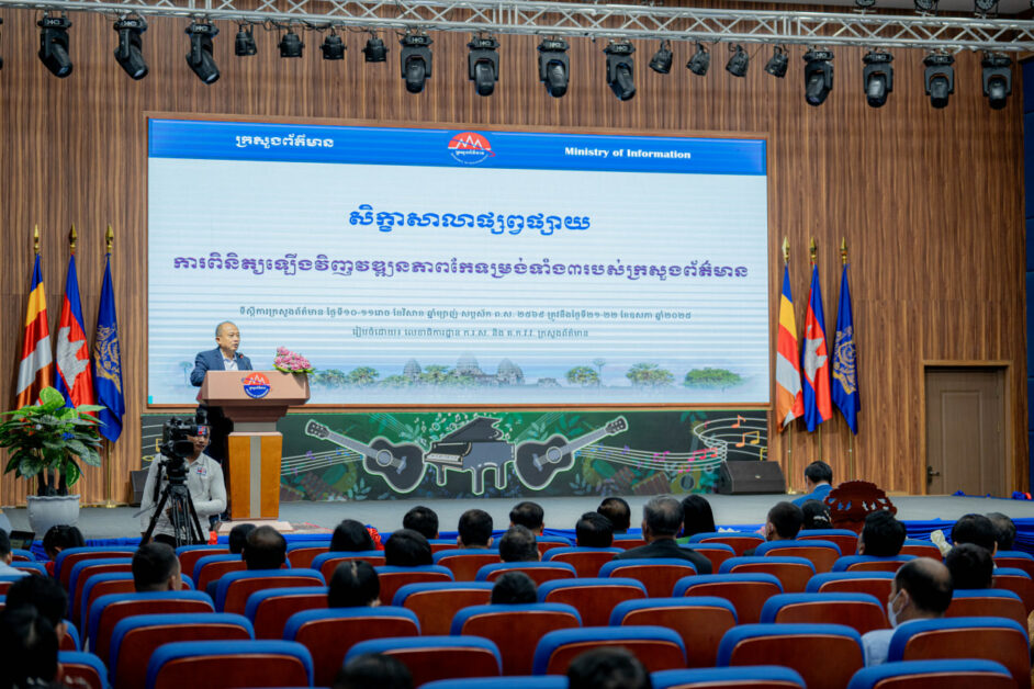 (ភ្នំពេញ)៖ ឯកឧត្តម រស់ ថាន់សន រដ្ឋលេខាធិការក្រសួងព័ត៌មាន អញ្ជើញធ្វើបទបង្ហាញពីដំណើរការពង្រឹងលើតួនាទីលើការងាររបស់អគ្គនាយកដ្ឋាន និងមន្ទីរព័ត៌មាន,មុខងារស្នូល និងមុខងារគាំទ្ររបស់ក្រសួង,មុខងារស្នូល និងមុខងារគាំទ្ររបស់មន្ទីរព័ត៌មាន,នៅក្នុងឱកាសនៃដំណើរការអង្គសិក្ខាសាលាស្តីពី “ការពិនិត្យឡើងវិញនូវវឌ្ឍនភាពការងារកែទម្រង់ទាំង៣ របស់ក្រសួងព័ត៌មាន រយៈពេល២ថ្ងៃ នៅព្រឹកថ្ងៃទី២១ ខែឧសភា ឆ្នាំ២០២៥ នាសាលចតុម្មុខមង្គល ទីស្តីការក្រសួង ក្រោមអធិបតីភាព ឯកឧត្តម នេត្រ ភក្ត្រា រដ្ឋមន្ត្រីក្រសួងព័ត៌មាន ៕