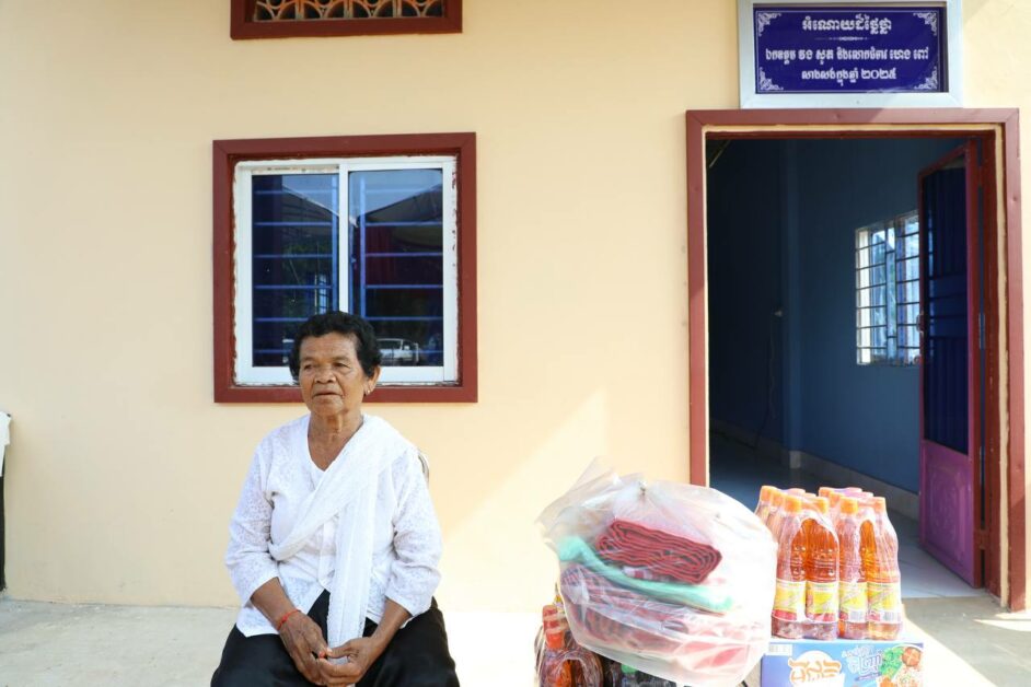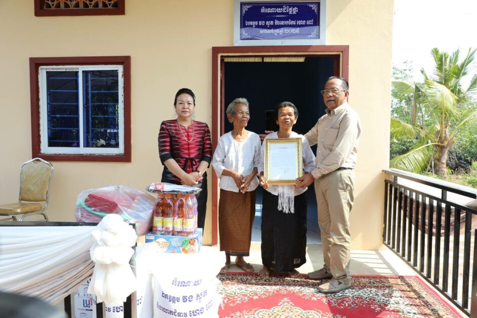 ផ្ទះថ្ម១ខ្នងទំហំ ៤.៥០ម៉ែត្រ x ៨.៥០ម៉ែត្រ ជារចនាបទក្រពើហារ ប្រកដំបូលស៊ីប្រូស៊ីម៉ង់ ដែលសាងសង់រួចរាល់តាំងពីឆ្នាំ២០២៥ ត្រូវបានប្រគល់ជូនលោកយាយ សុខ សន អាយុ ៩២ឆ្នាំ ដែលជាជនចាស់ជរាទីទាល់ក្រ និងគ្មានទីពឹង រស់នៅភូមិជាចត្បូង ឃុំជាច ស្រុកកំចាយមារ ខេត្តព្រៃវែង។