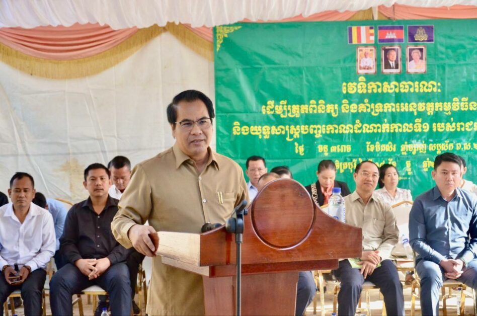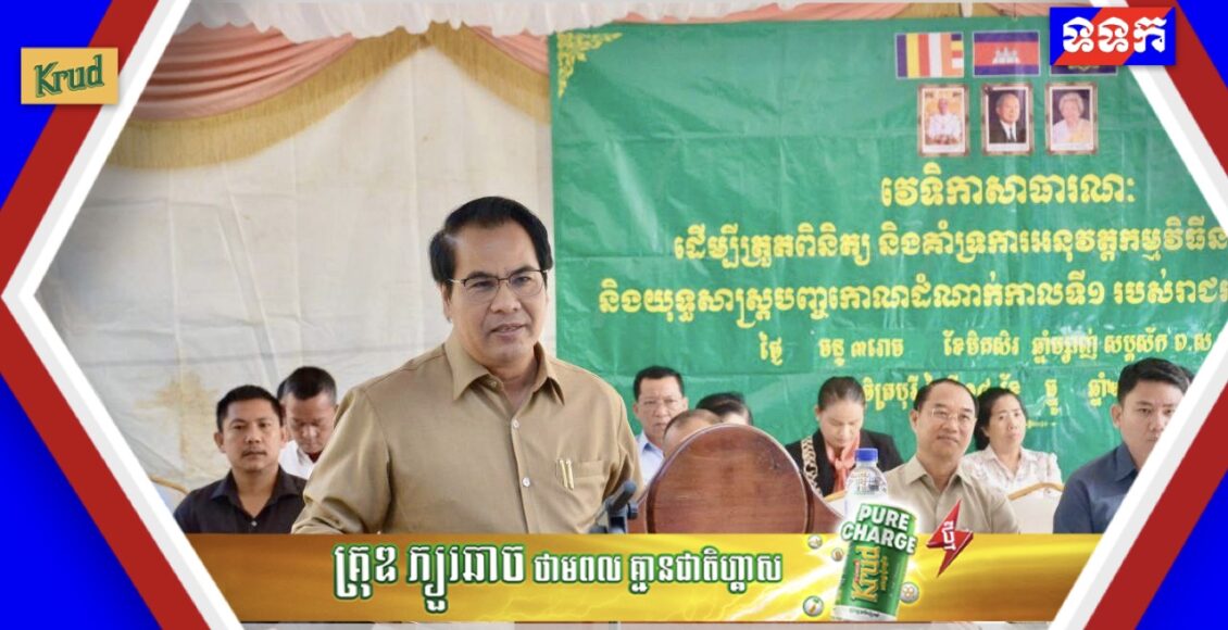 ឯកឧត្តម សុខ ចាន់ភក្តី រដ្ឋលេខាធិការក្រសួងព័ត៌មាននិងជាប្រធានក្រុមការងាររាជរដ្ឋាភិបាលចុះមូលដ្ឋានស្រុកចិត្របុរី តំណាងដ៏ខ្ពង់ខ្ពស់ ឯកឧត្តម នេត្រ ភក្រ្តា រដ្ឋមន្ត្រីក្រសួងព័ត៌មាន និងជាប្រធានក្រុមការងាររាជរដ្ឋាភិបាលចុះមូលដ្ឋានខេត្តក្រចេះ អញ្ជើញជាអធិបតីភាពក្នុងវេទិកាសាធារណ: ដើម្បីត្រួតពិនិត្យ និងគាំទ្រការអនុវត្តកម្មវិធីនយោបាយ និងយុទ្ធសាស្រ្តបញ្ចកោណដំណាក់កាលទី១ របស់រាជរដ្ឋាភិបាលកម្ពុជា ក្នុងបរិវេណវត្តថ្មគ្រែ ភូមិថ្មគ្រែកណ្តាល ឃុំថ្មគ្រែ ស្រុកចិត្របុរី ដើម្បីចុះជួបជាមួយប្រជាពលរដ្ឋ ដោះស្រាយបញ្ហាប្រឈម ក្តីទុក្ខកង្វល់ផ្សេងៗដែលបងប្អូនប្រជាពលរដ្ឋត្រូវបានស្នើសុំឱ្យអាជ្ញាធរជួយដោះស្រាយ ស្របតាមគោលការណ៍រាជរដ្ឋាភិបាល